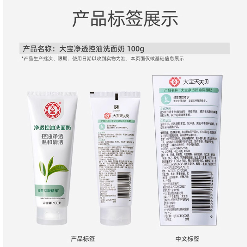 大宝绿茶控油洁面乳100g清爽控油女男洗面奶老牌子官方旗舰店