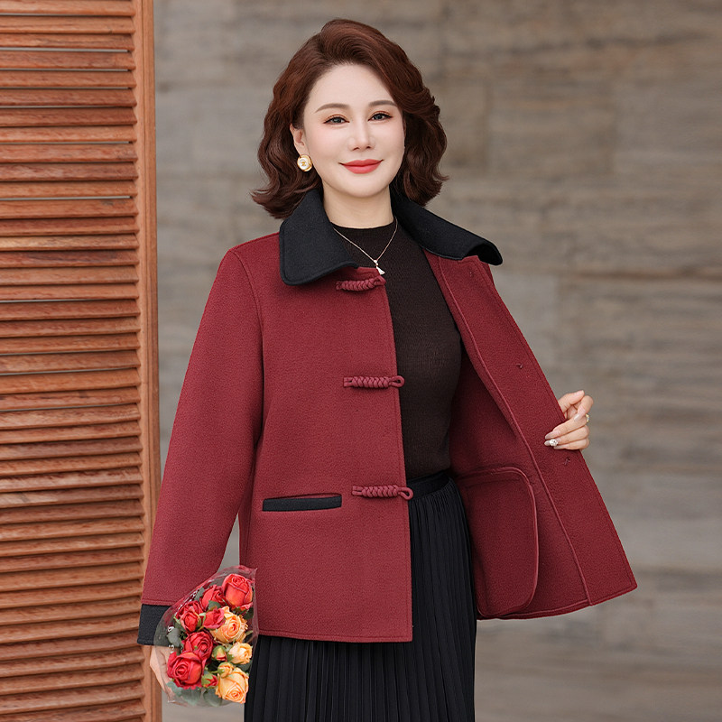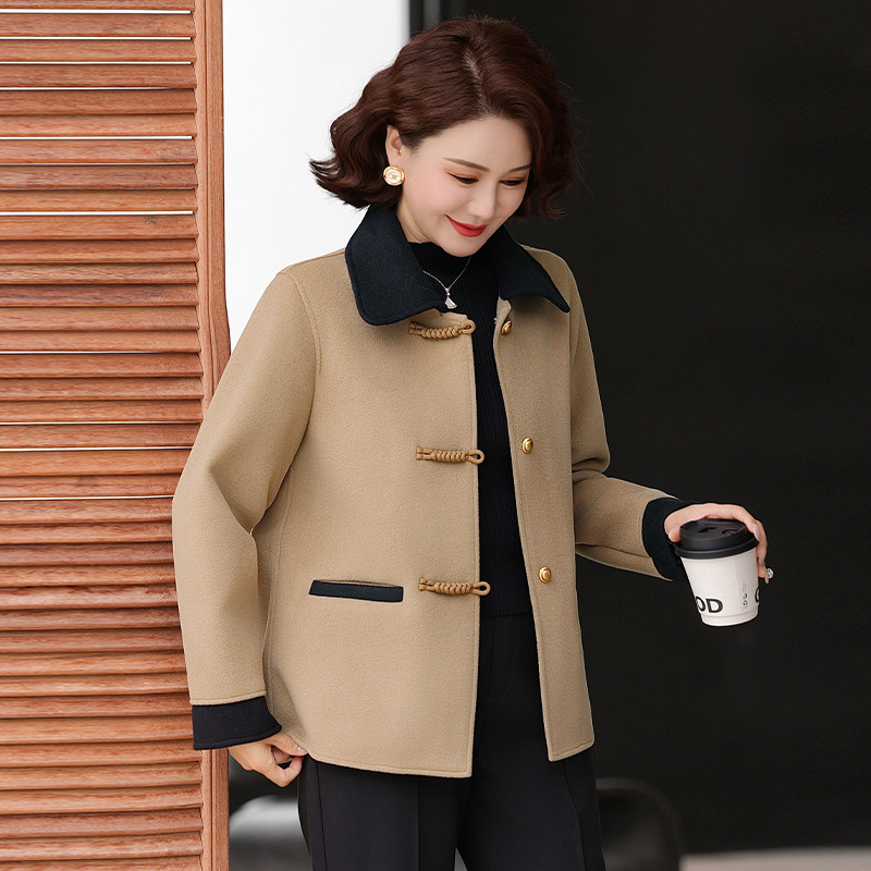 洋气妈妈秋装双面呢外套中老年春秋季气质高贵大码毛呢上衣女短款