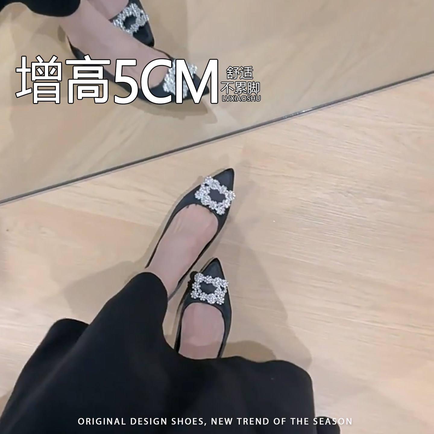法式内增高水钻方扣浅口尖头单鞋女2026新款优雅气质通勤玛丽珍鞋