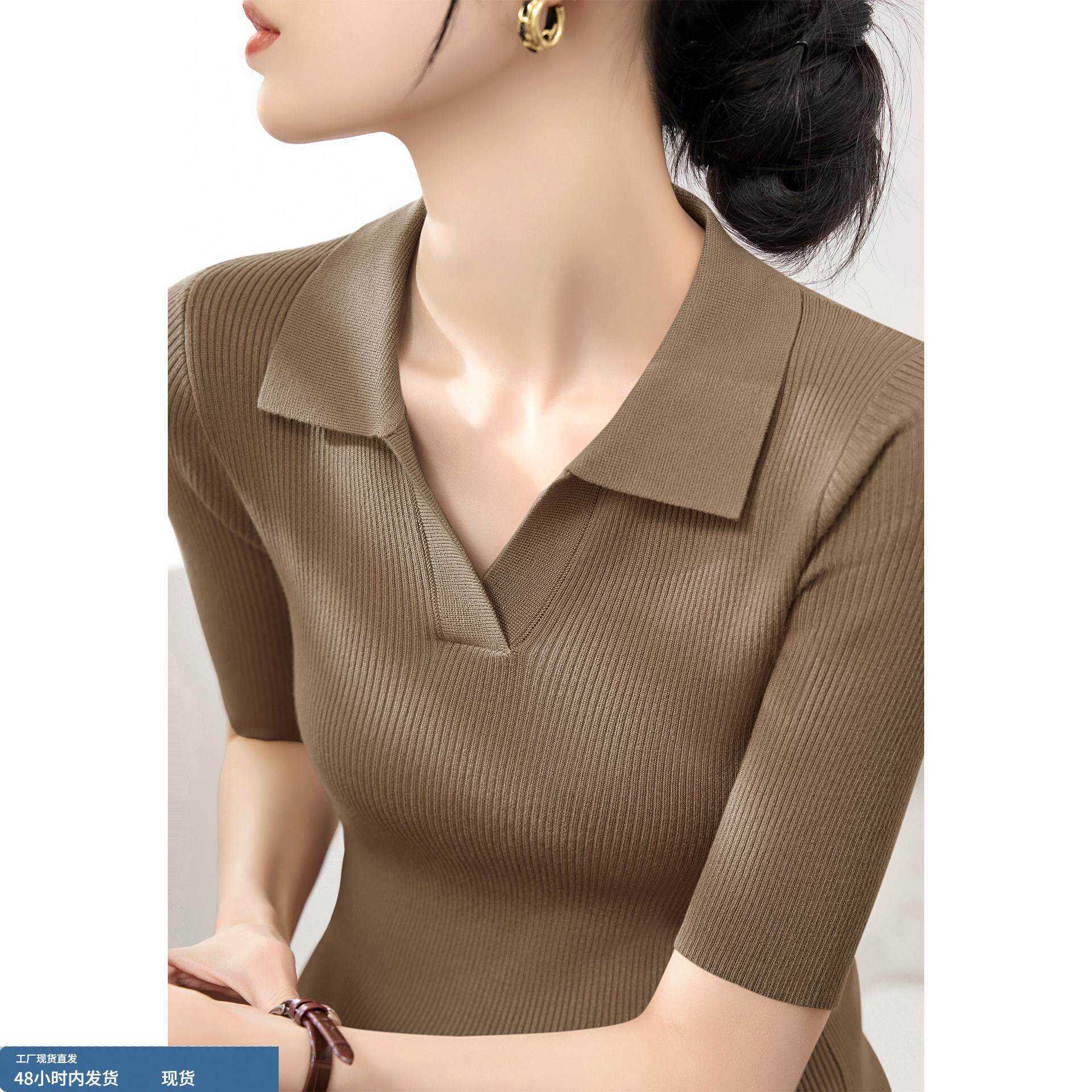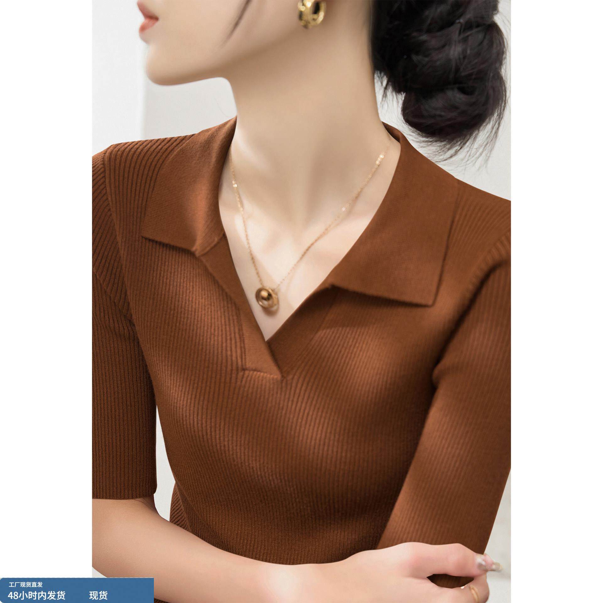 2026年夏季新款POLO领针织打底衫女款莱赛尔天丝半袖上衣修身薄款