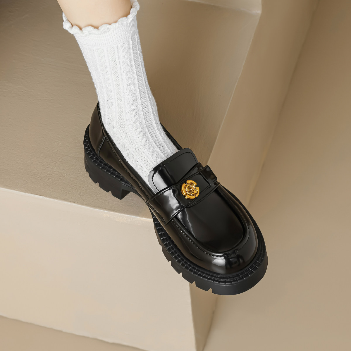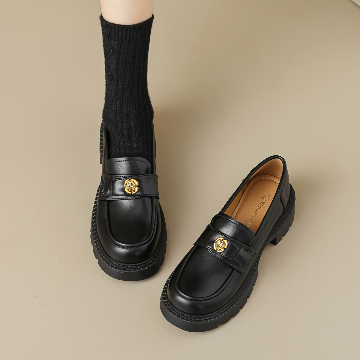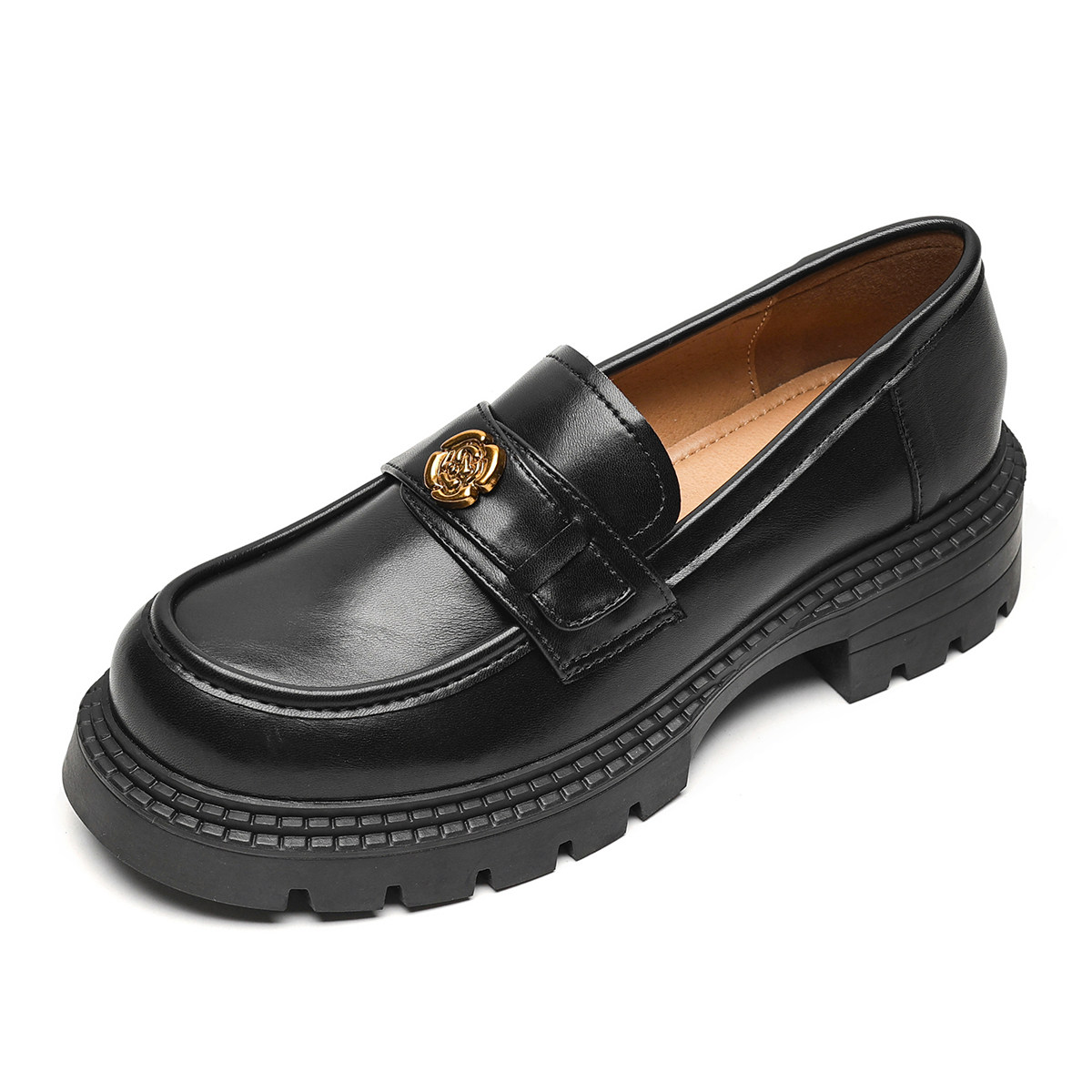 真皮厚底小皮鞋女春款英伦风百搭单鞋山茶花乐福鞋大码女鞋41到43