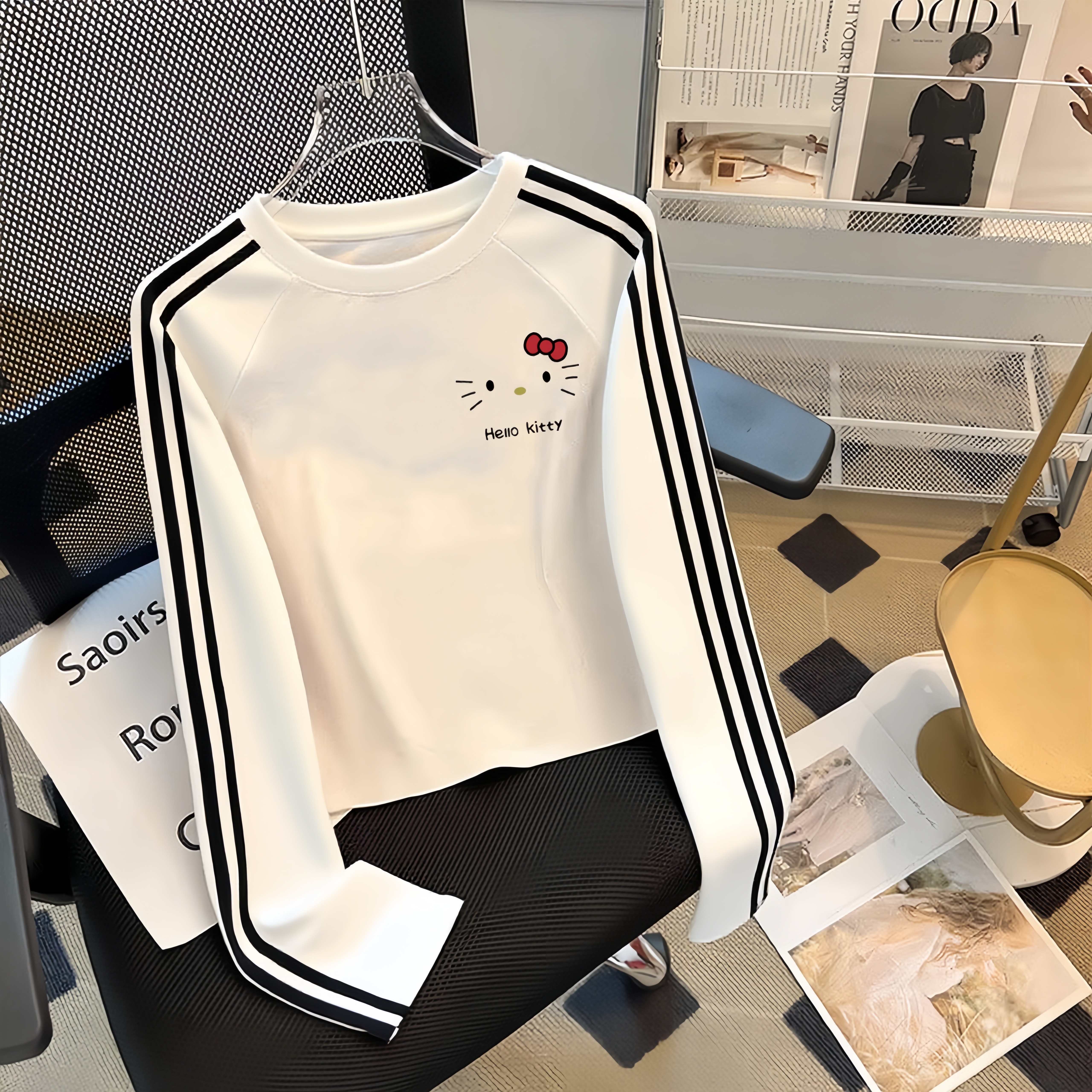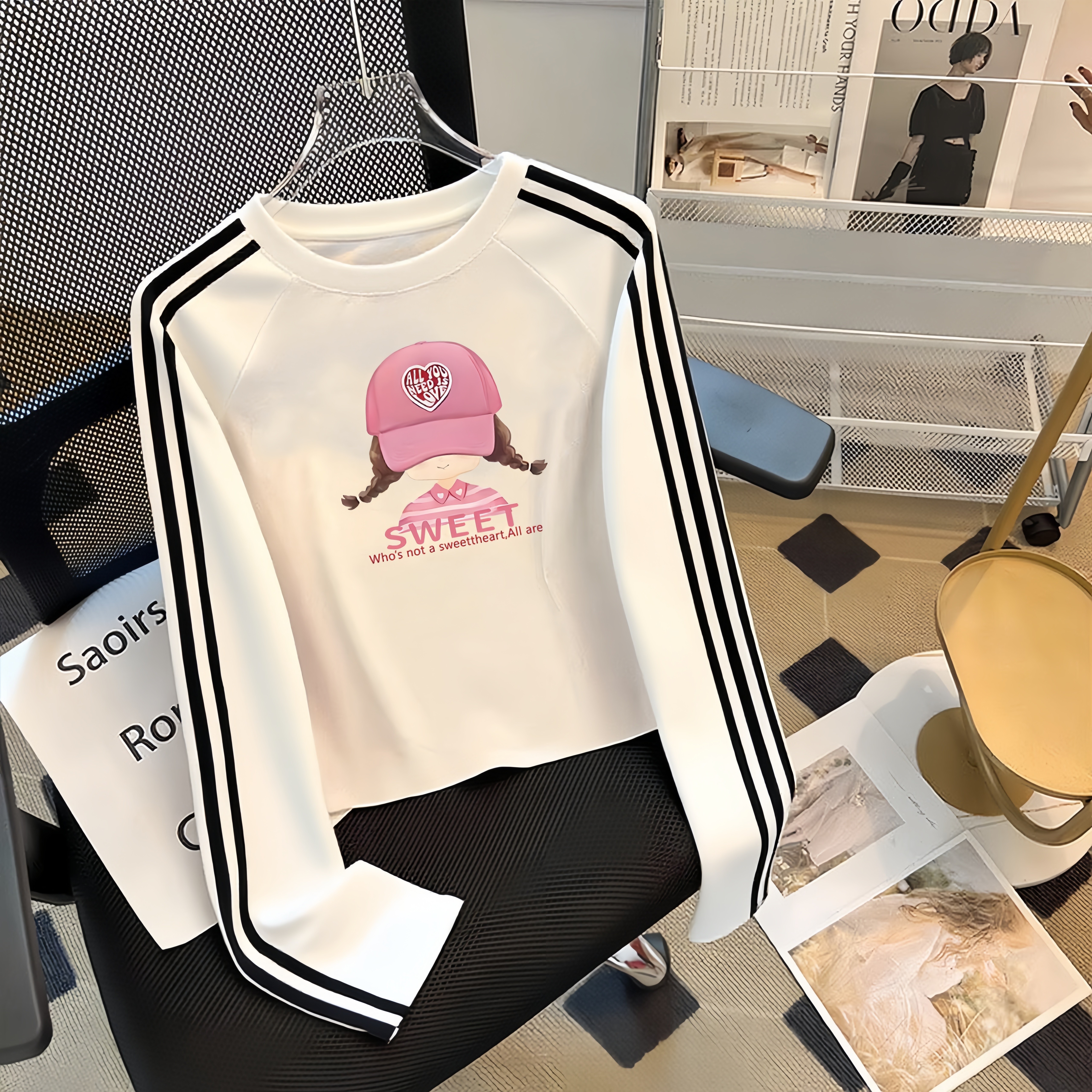 女童长袖T恤高腰中大童短款街舞儿童春秋插肩上衣女孩内搭修身ins
