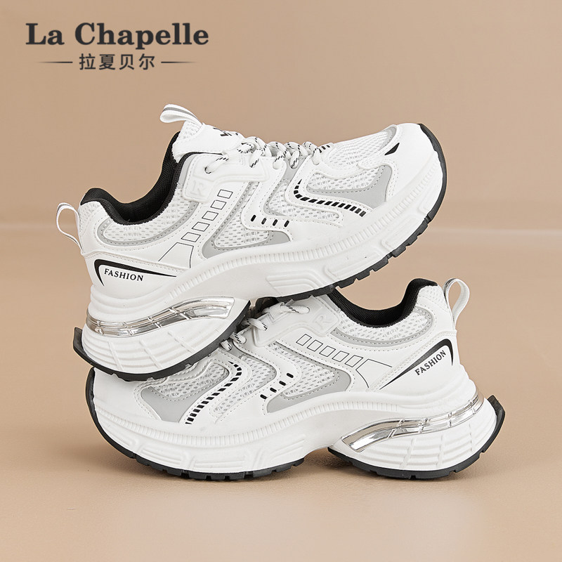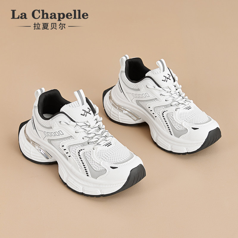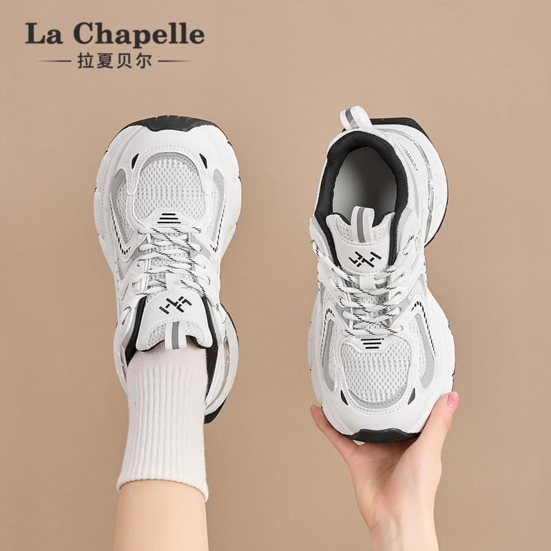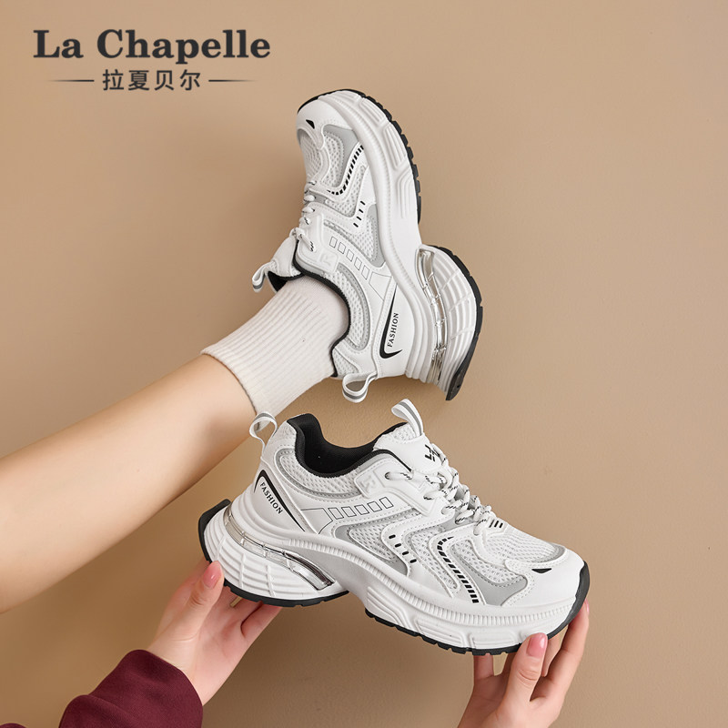 拉夏贝尔白色老爹鞋女2026新款春夏季厚底增高透气网面百搭运动鞋