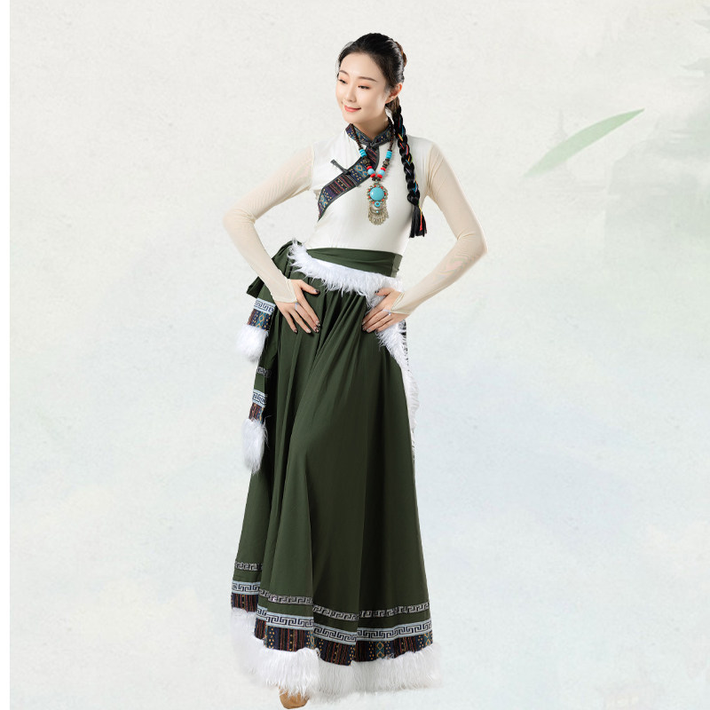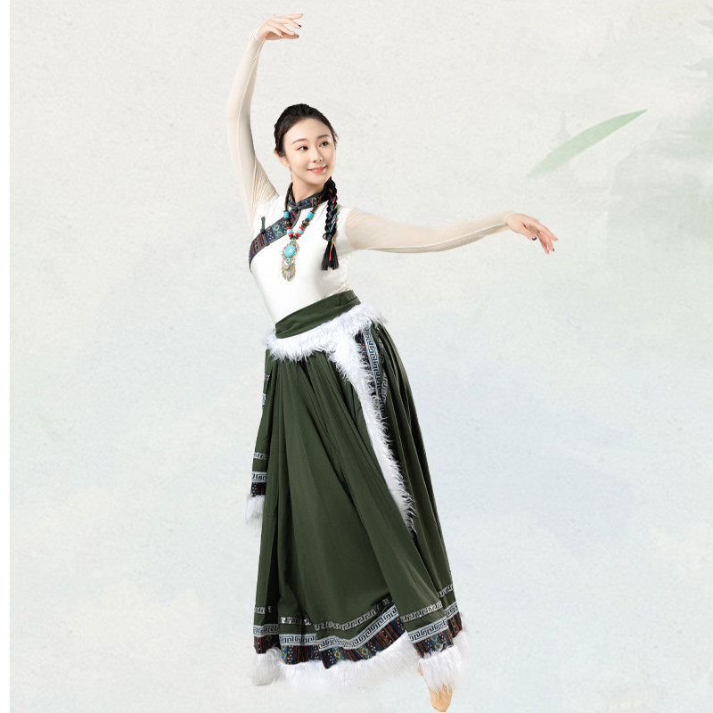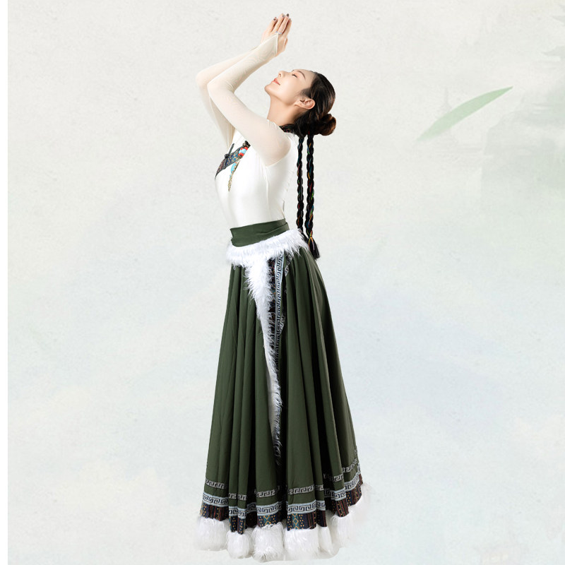 民族舞台藏族舞蹈服装成人女艺考裙半身练功服剧目比赛演出大摆裙