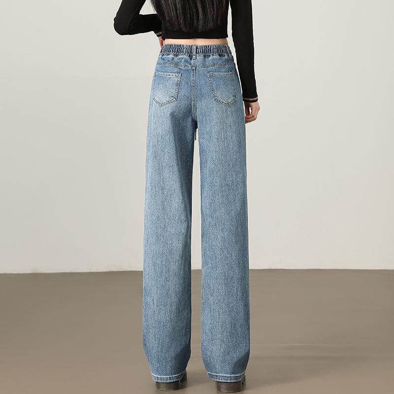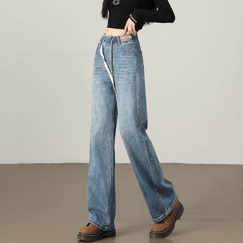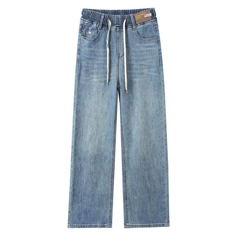 浅色裤子春秋2025新款弹力牛仔裤初中生青少年女孩春装大童阔腿裤