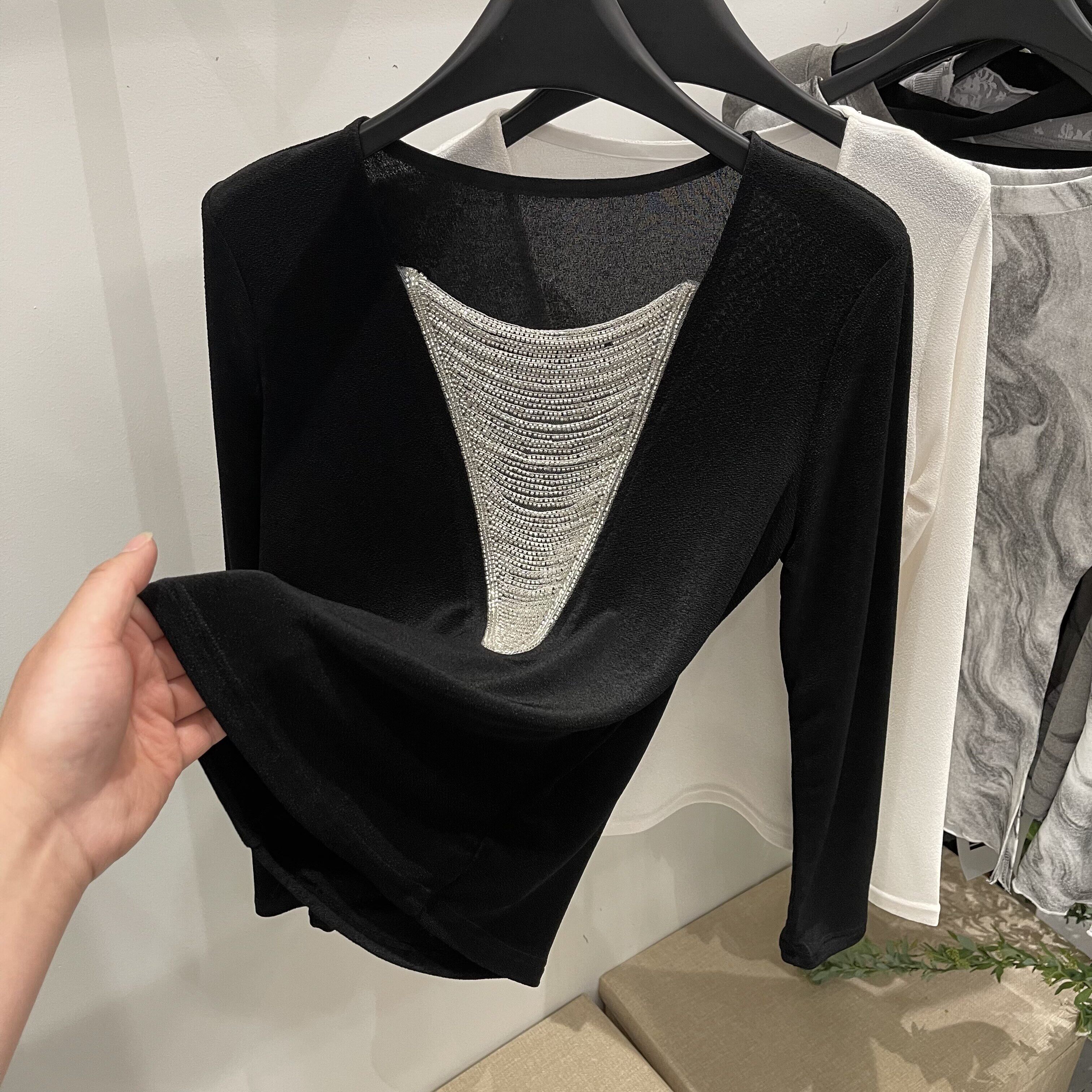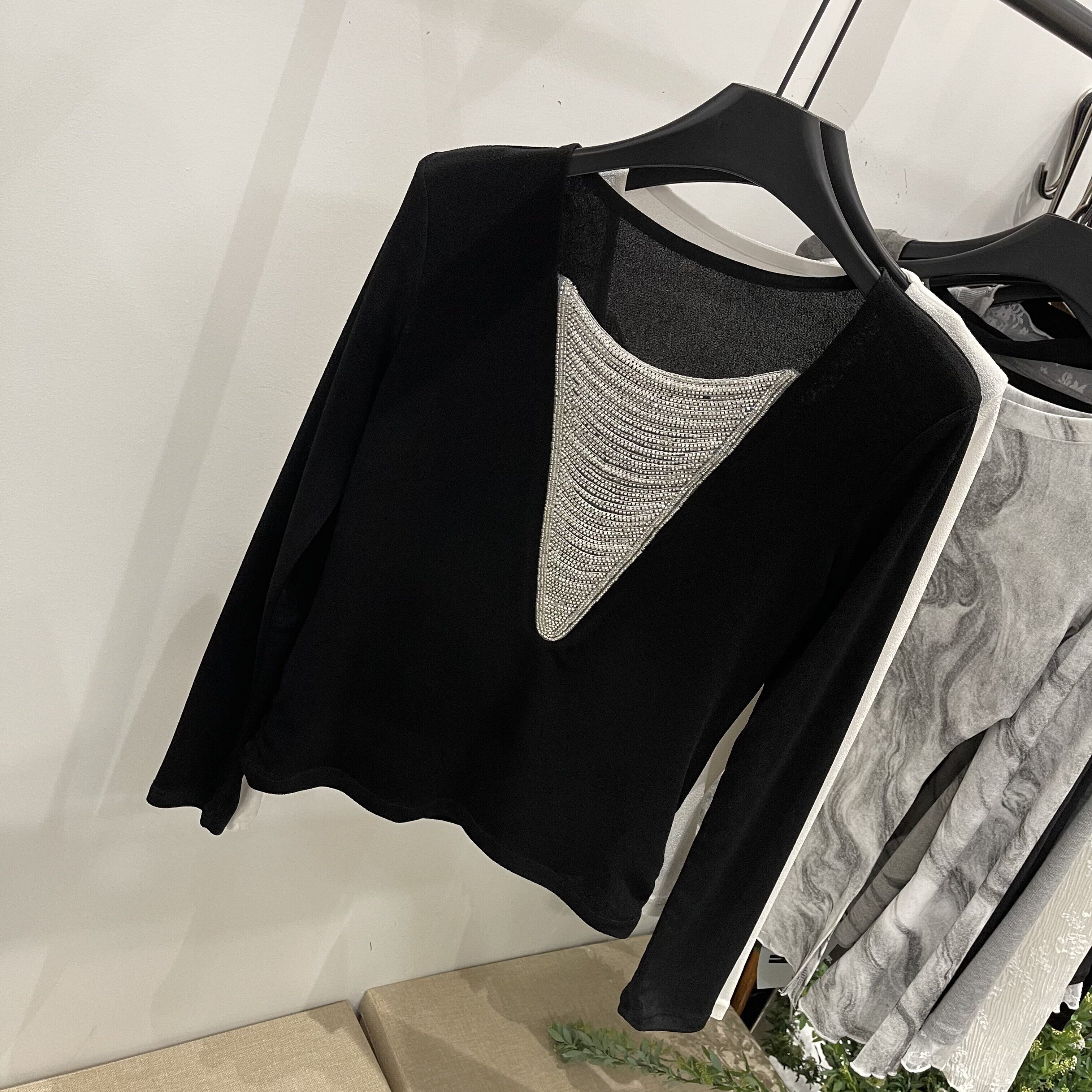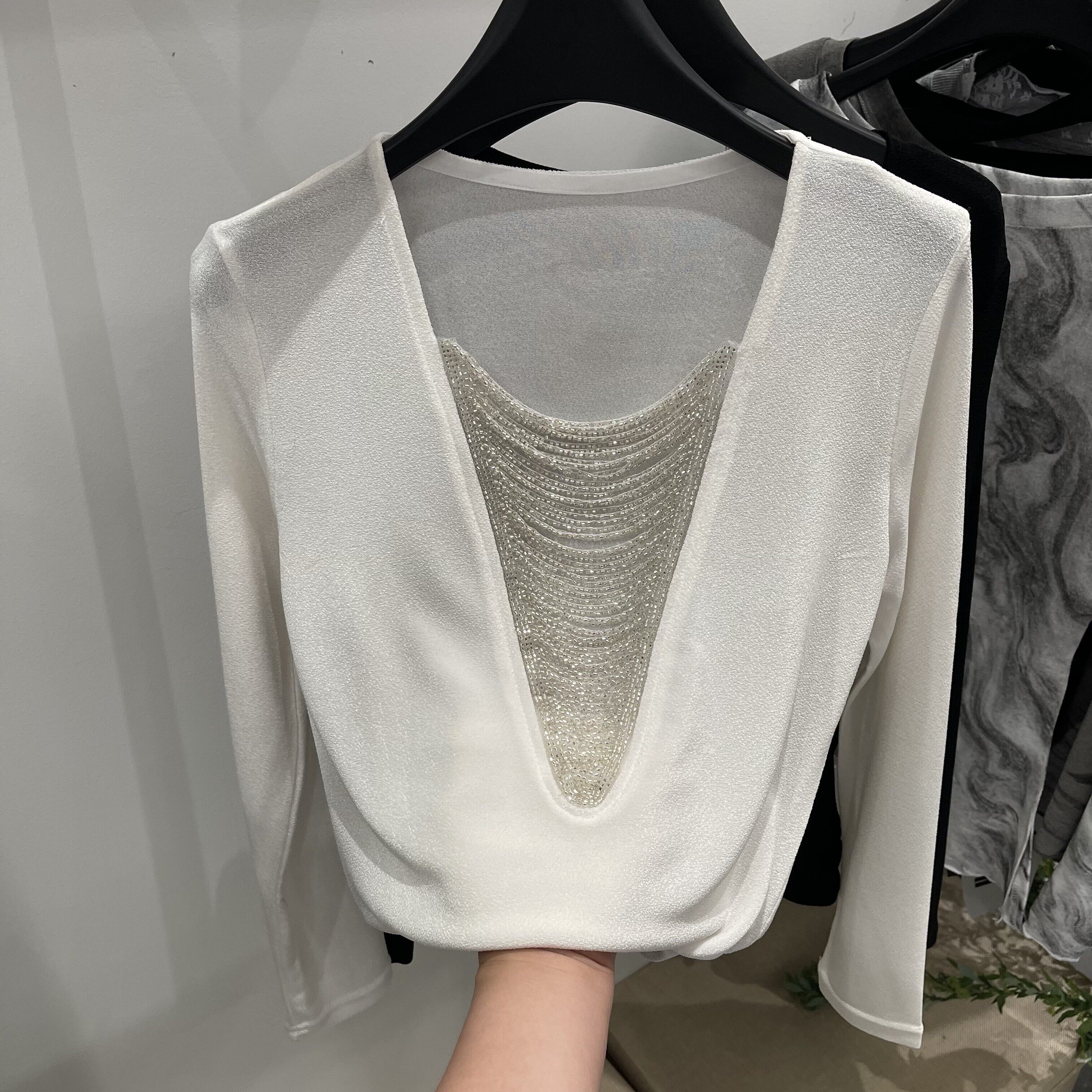 设计感串珠轻薄款醋酸长袖T恤女2026早春新款显瘦洋气打底衫上衣