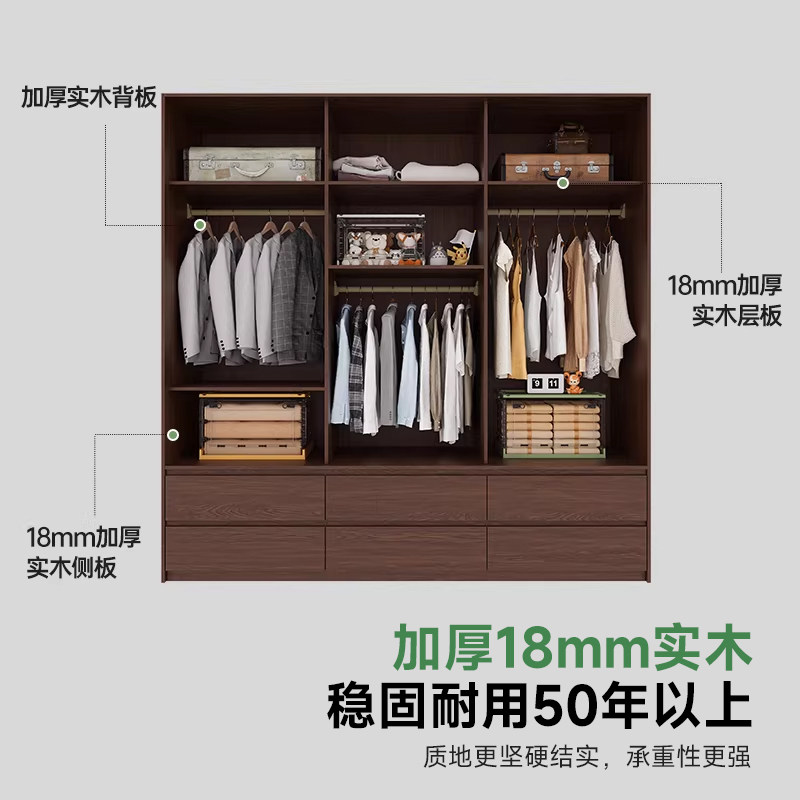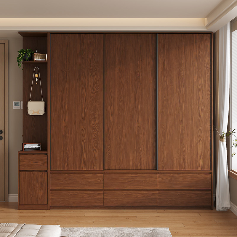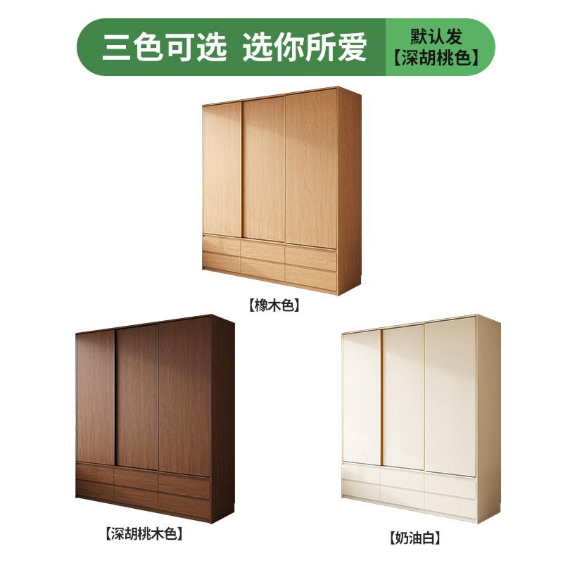 定制衣柜实木推拉门家用卧室小户型简约主卧趟门橡木收纳衣橱