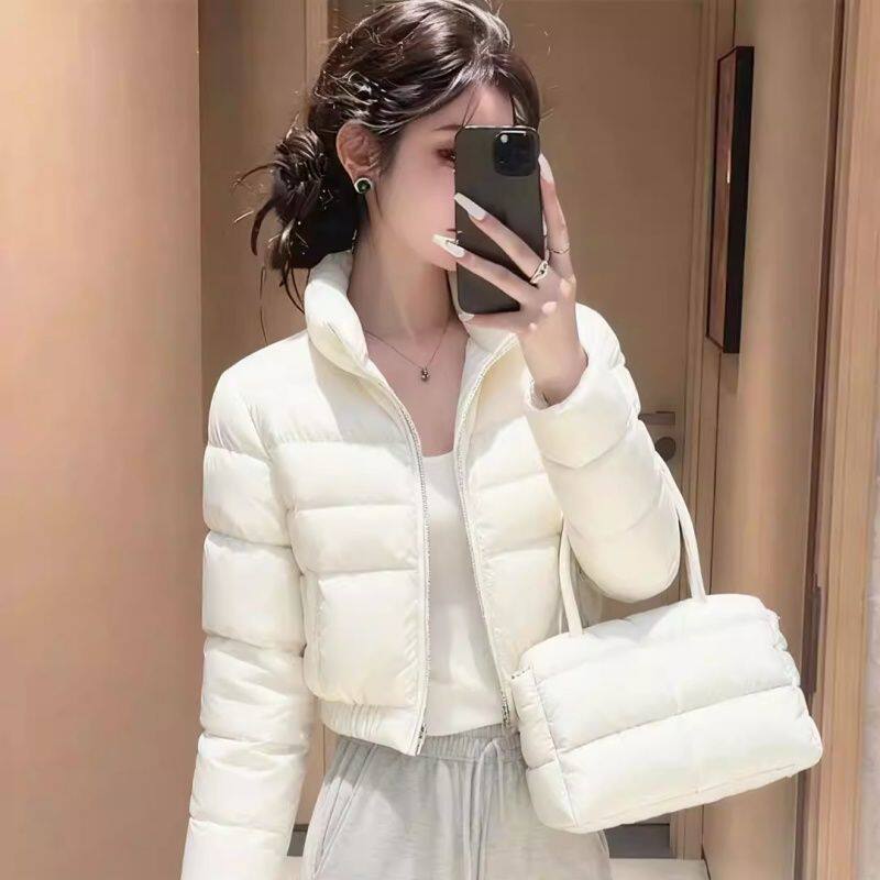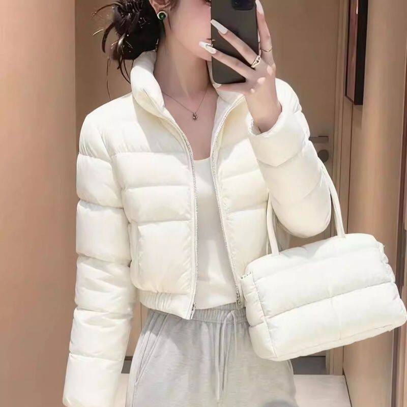 冬季新款白色棉服女款立领超好看显瘦保暖小个子短款棉衣外套