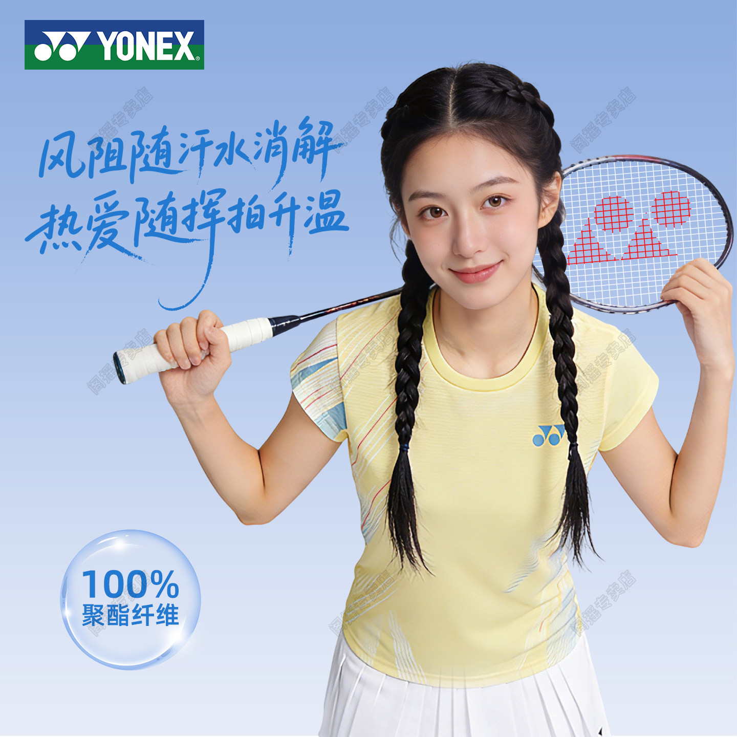 YONEX尤尼克斯羽毛球服女速干透气运动上衣短袖芥末黄yy2026新款