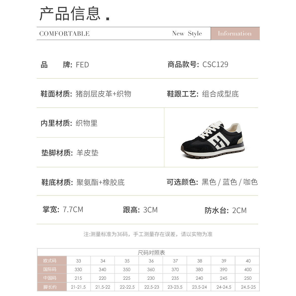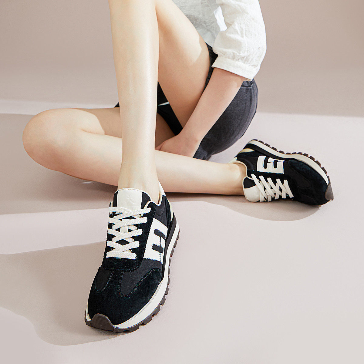 fed女鞋春季百搭厚底复古休闲运动鞋户外跑步健步旅游德训鞋女