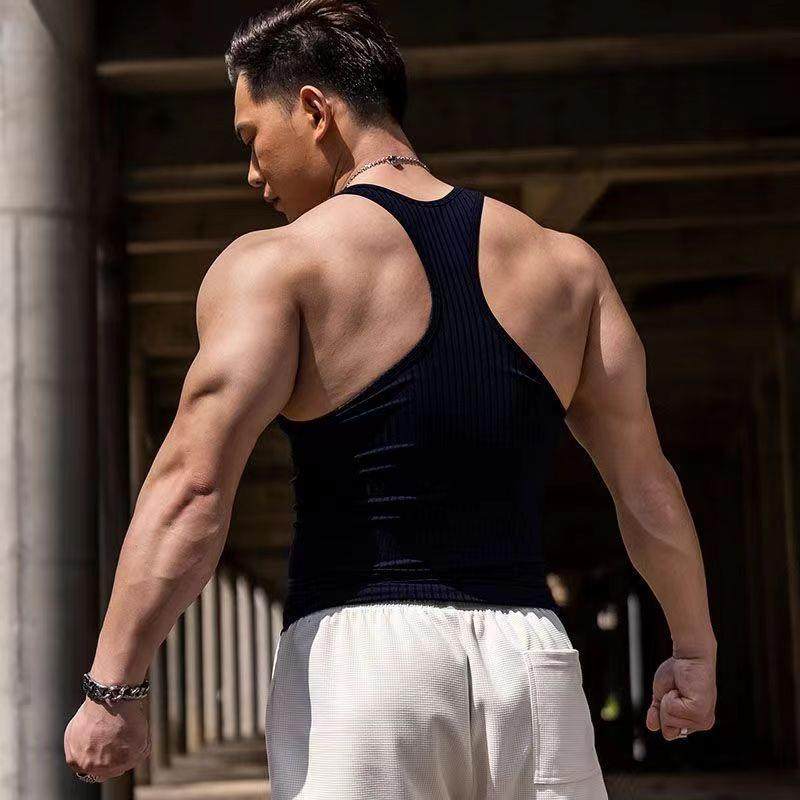 美式螺纹紧身弹力个性背心男方领吊带健身坎肩无袖工字背心训练服
