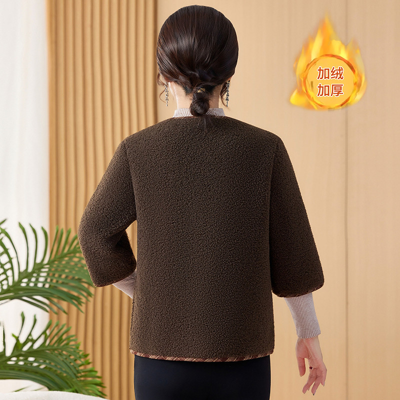 妈妈装短袖马甲秋冬季加绒加厚七分袖棉衣中老年女装半袖外套外穿