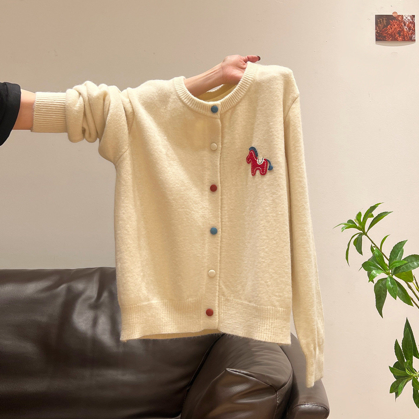 红色圣诞长袖针织开衫刺绣毛衣外套冬季新款慵懒高级感加厚上衣女
