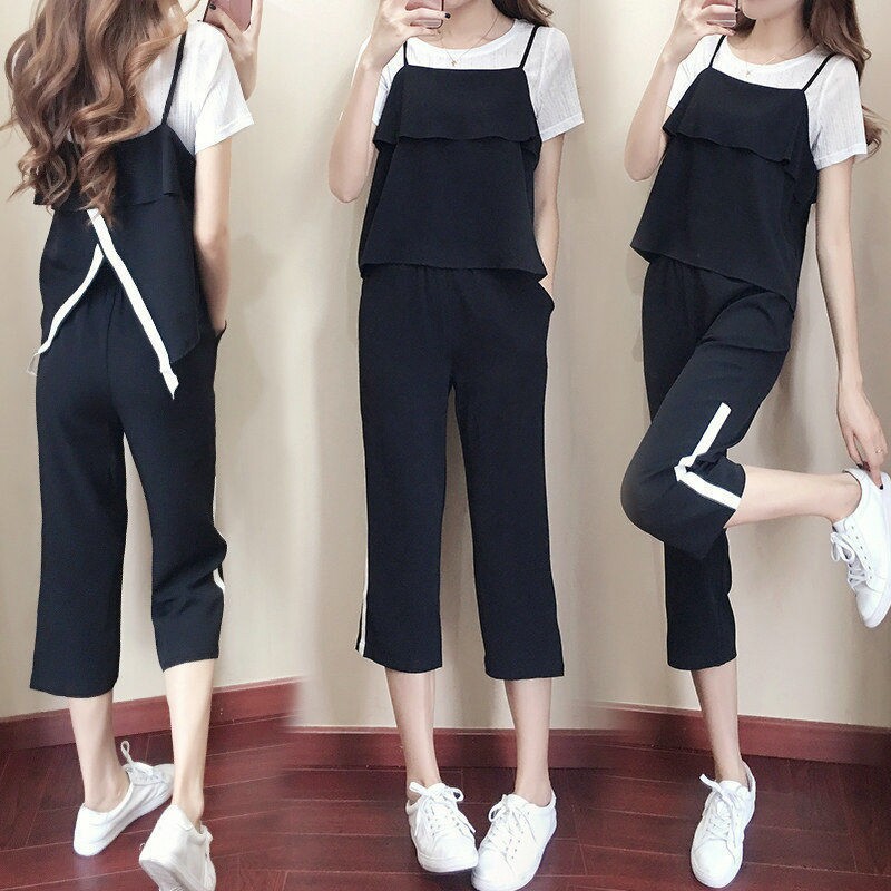 韩版大码时髦洋气三件套运动套装女2026夏季新款小个子七分裤休闲