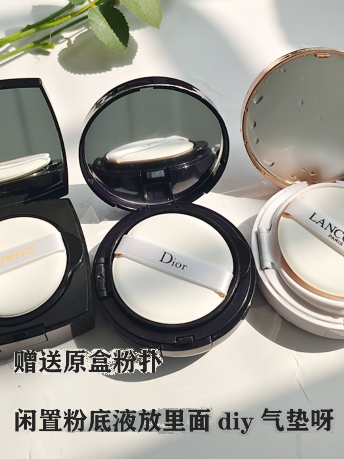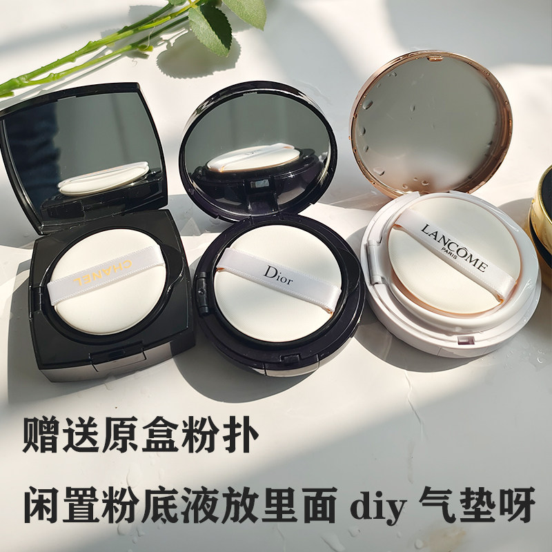 气垫盒空盒带粉扑外壳黑皮革款羽毛通用迷你小空盒diy粉底液分装