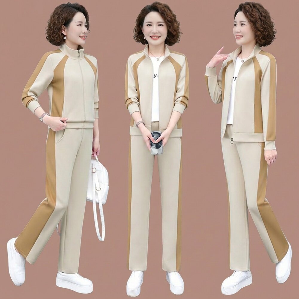 中年妈妈春装休闲套装运动服显年轻洋气春款衣服三件套2026年新款