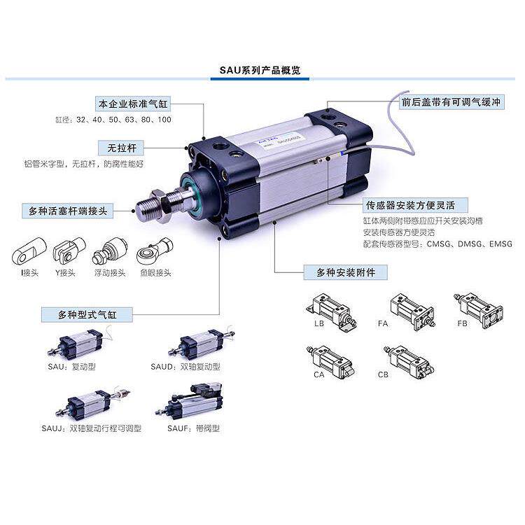 亚德客SU标准气缸32/40/50/63-25/50/75/100/125/150/175-S-磁SAU