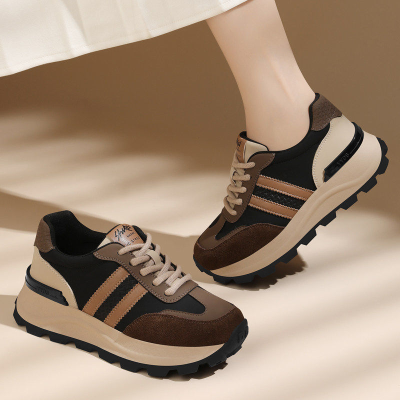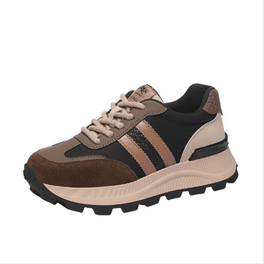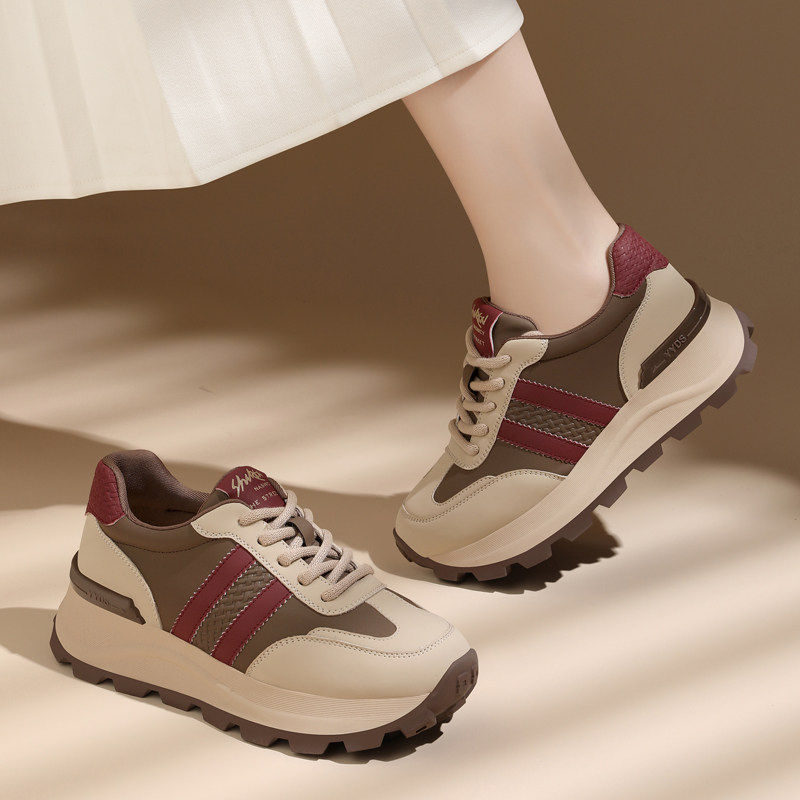 阿甘女鞋真皮透气厚底增高2025春季新款软底不累脚百搭休闲 运动