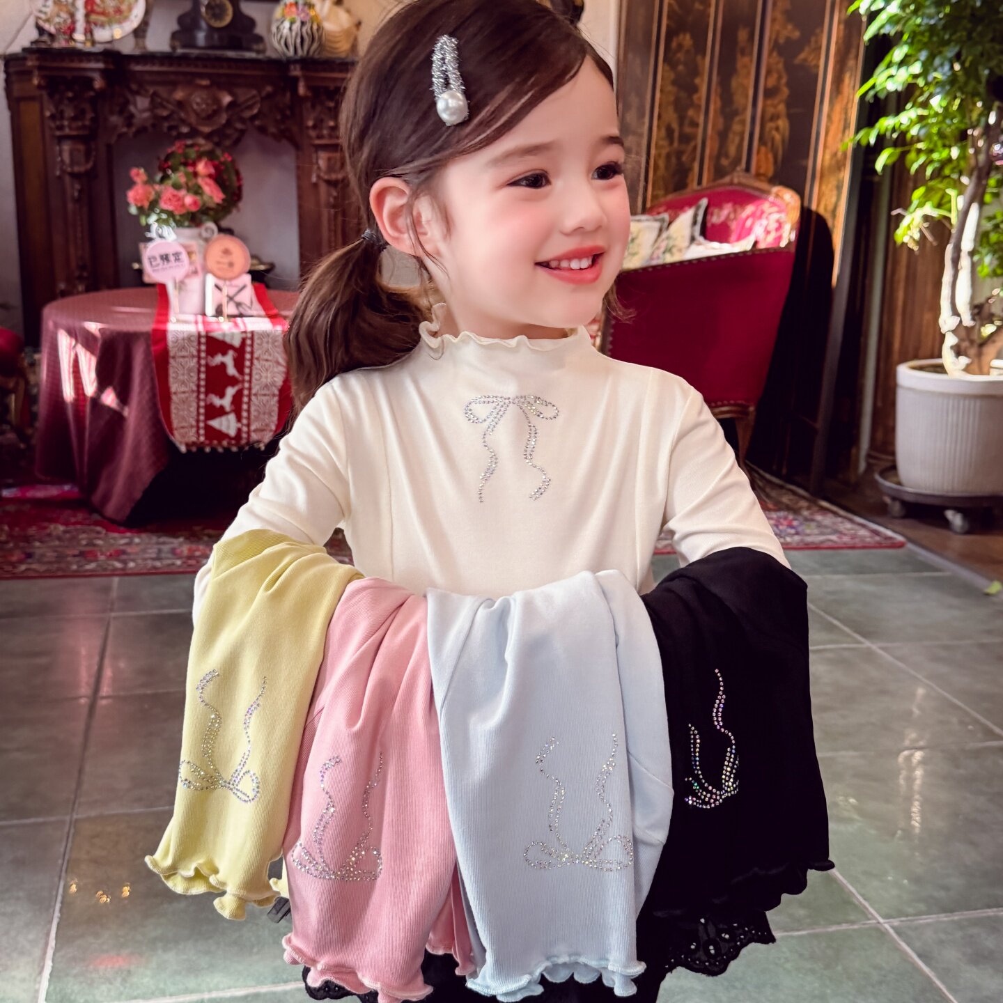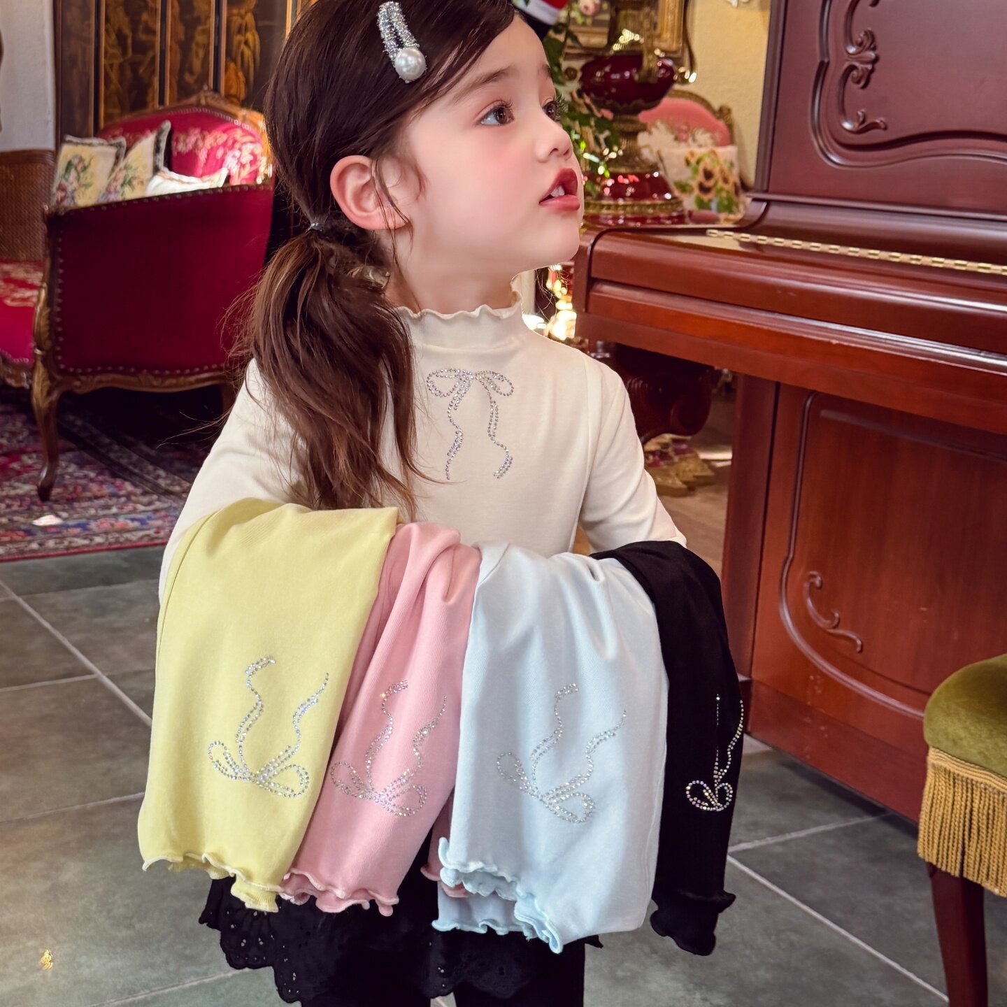 米米哈罗女童打底衫洋气儿童长袖T恤春装2026新款小女孩内搭上衣