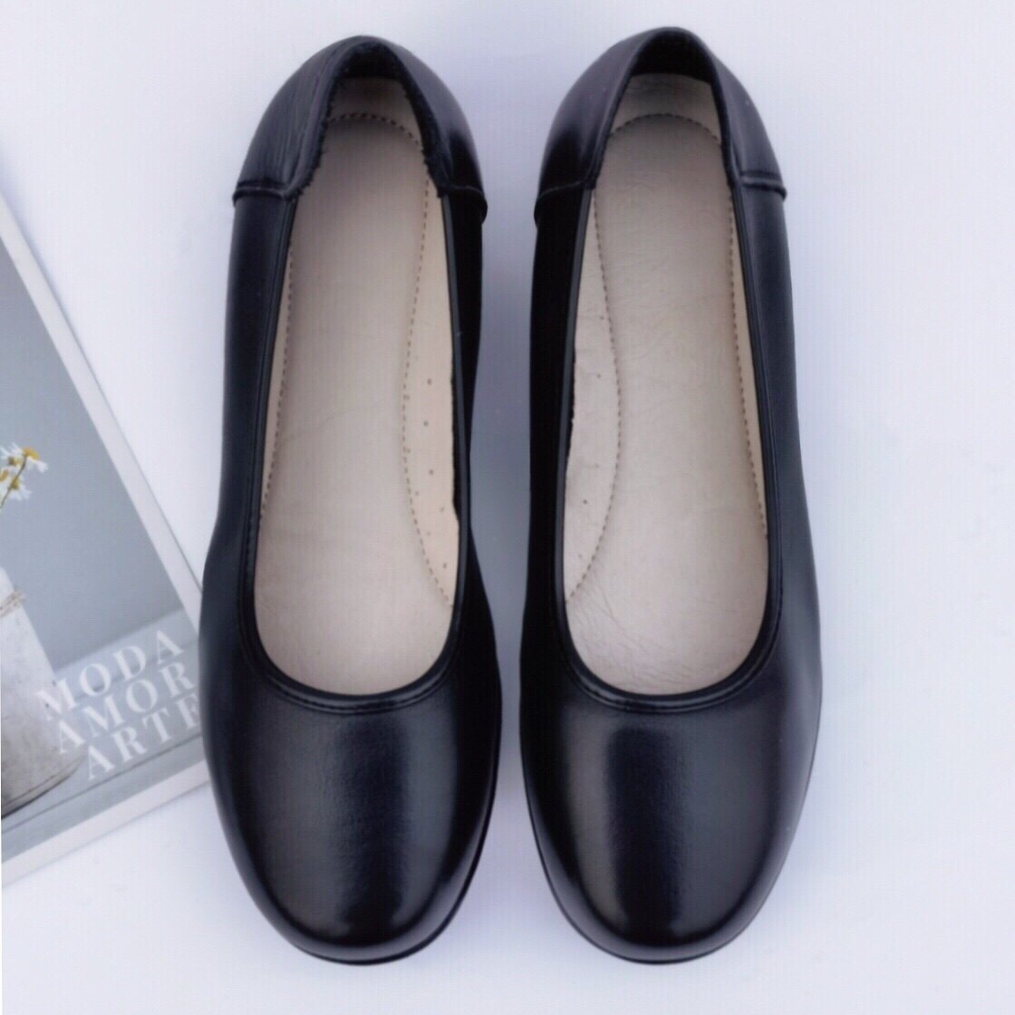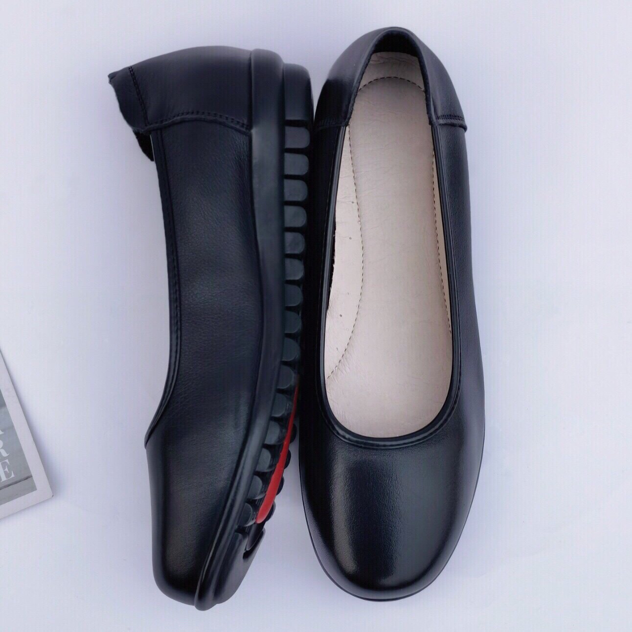 正品感叹号空姐平底鞋头层牛皮真皮工作鞋浅口单鞋OL职业通勤女鞋