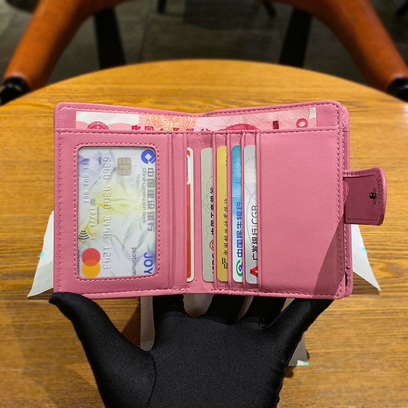 编织真皮钱包女短款多功能折叠搭扣零钱袋卡包一体小众设计师 ins