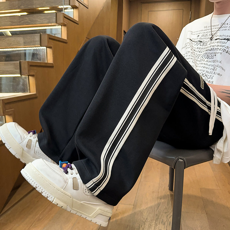 青少年裤子男款加绒直筒宽松初高中运动休闲阔腿裤弯刀裤秋冬男裤