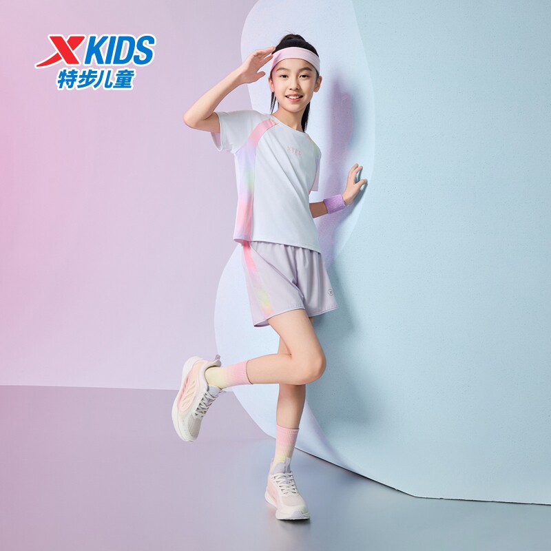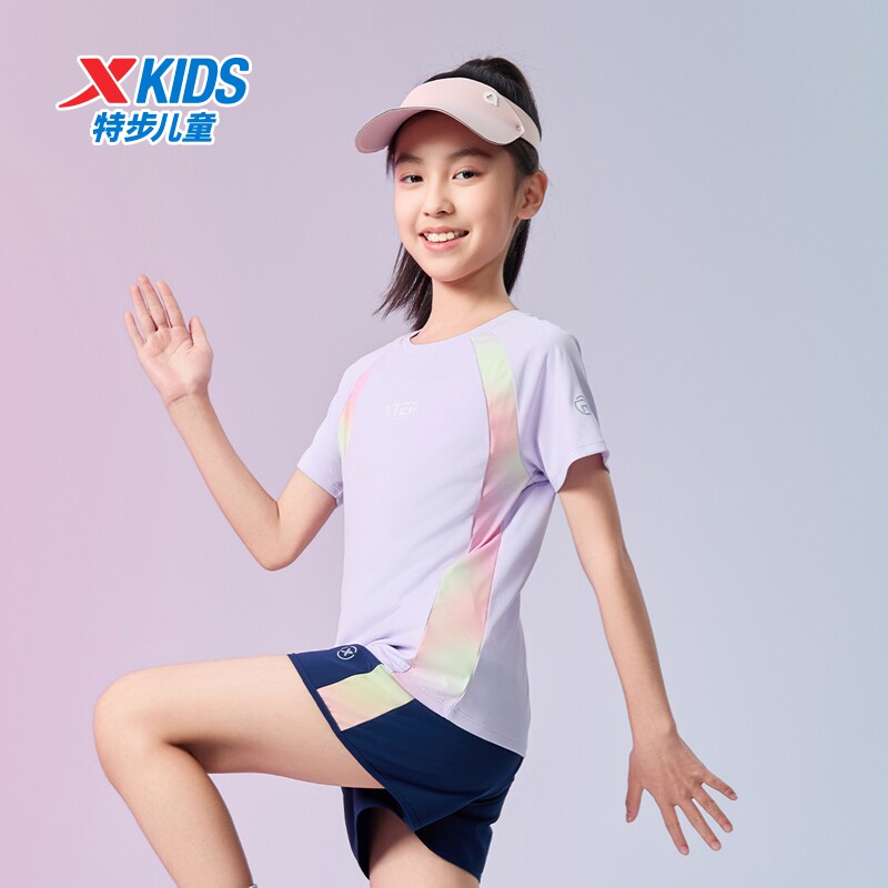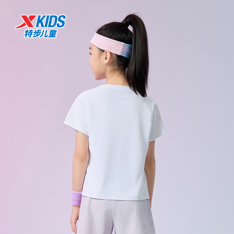 特步童装儿童圆领速干衣夏季新款女童透气柔软运动中大童短袖T恤