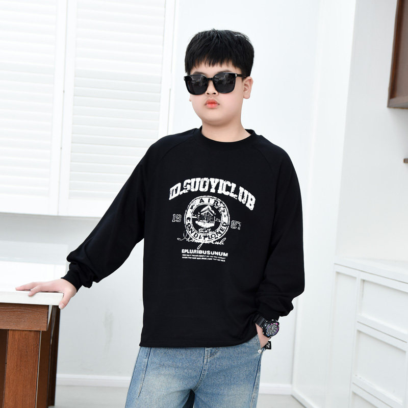 胖男童长袖T恤宽松大码春秋上衣2026新款卫衣中大男孩打底衫薄款t