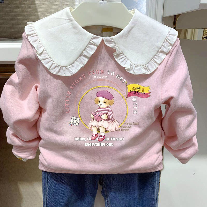 26春款围尼小熊女童大翻领纯棉毛圈休闲卫衣上衣验货品质