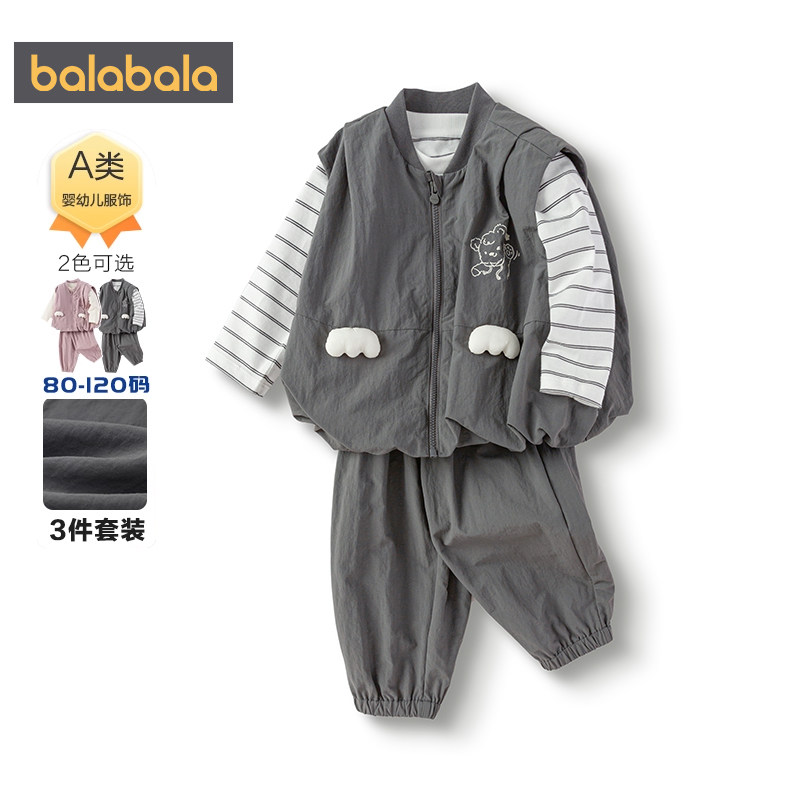 巴拉巴拉宝宝运动套装男童女童三件套春秋款童装婴儿休闲外套衣服