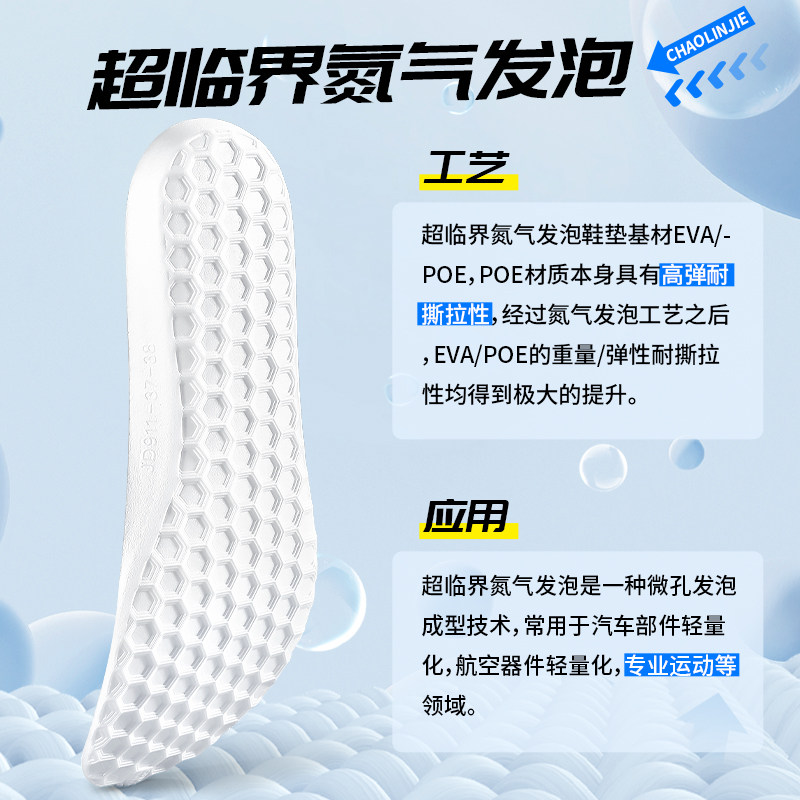 超临界发泡鞋垫男跑步专业跑鞋篮球运动气垫减震足弓支撑女羽毛球