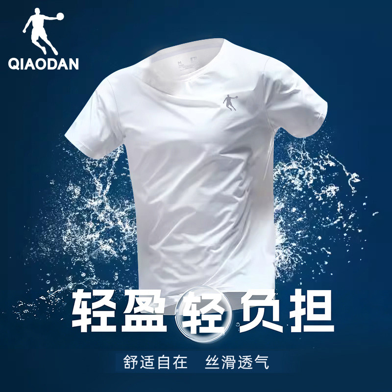 乔丹冰丝短袖T恤男士夏季薄款速干衣官方旗舰店男款刺绣运动上衣