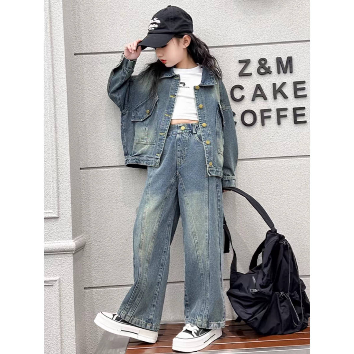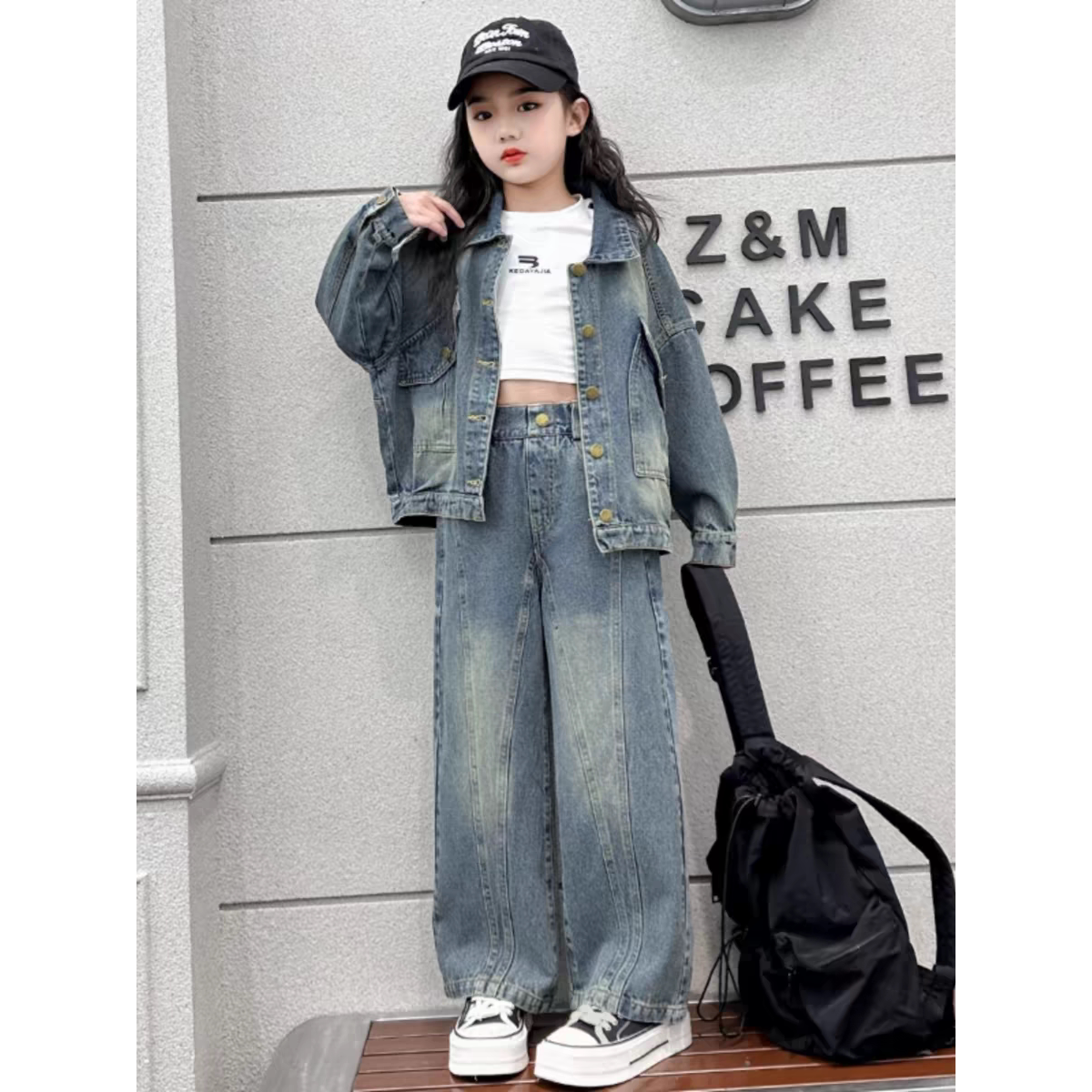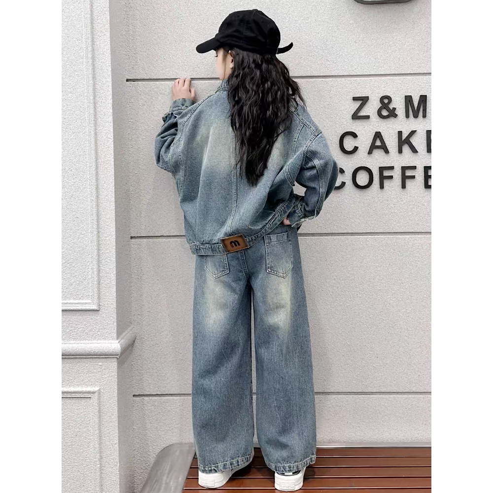 女童装时髦套装洋气春秋季新款中大童韩版网红儿童牛仔两件套炸街