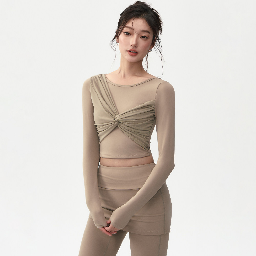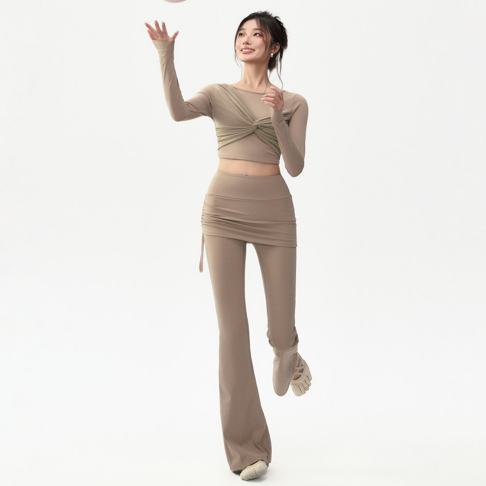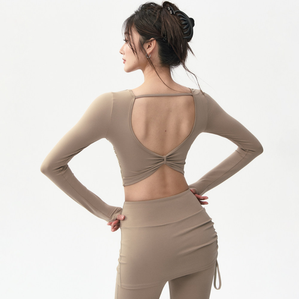 带胸垫瑜伽服长袖套装女微喇裤露背健身运动上衣普拉提训练服套装