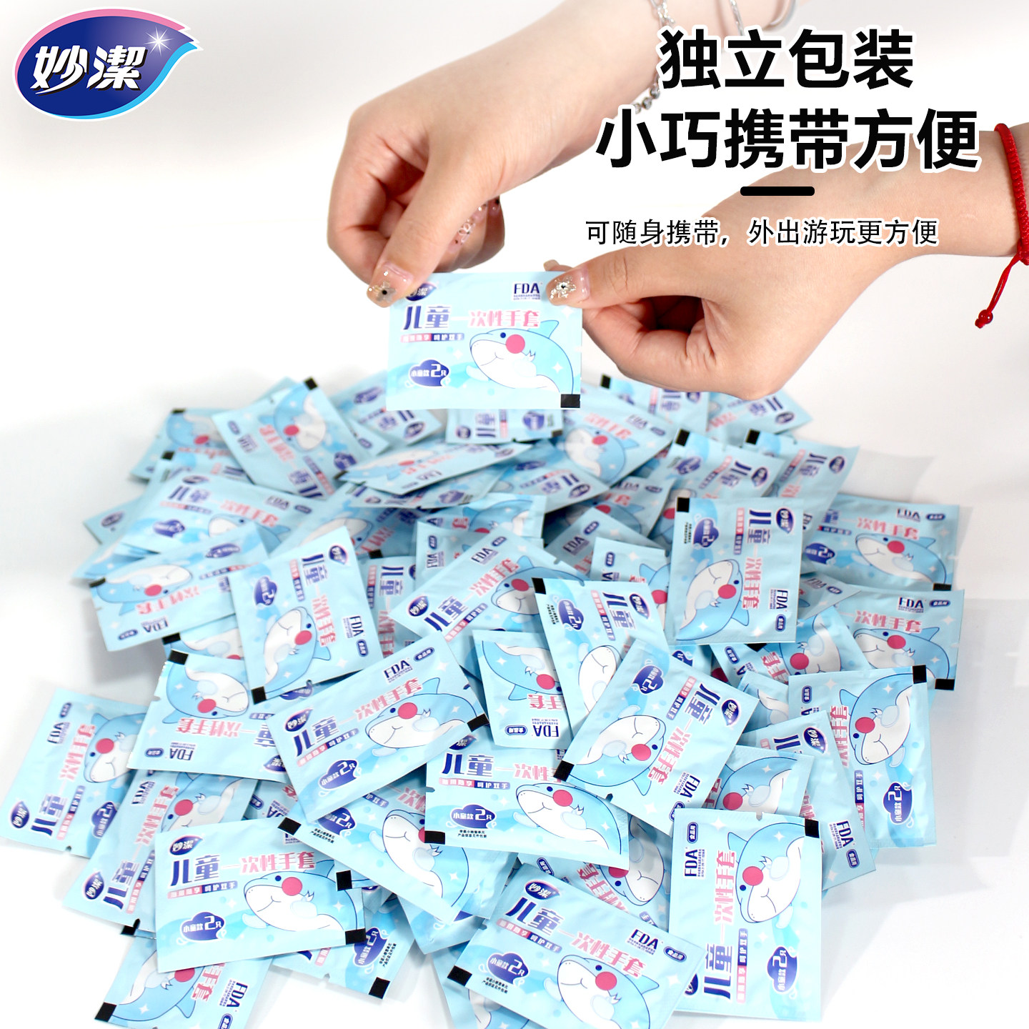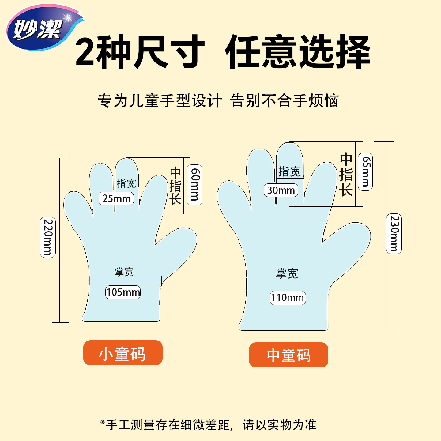 妙洁儿童一次性手套食品级专用宝宝小孩家用pe加厚耐磨独立包装