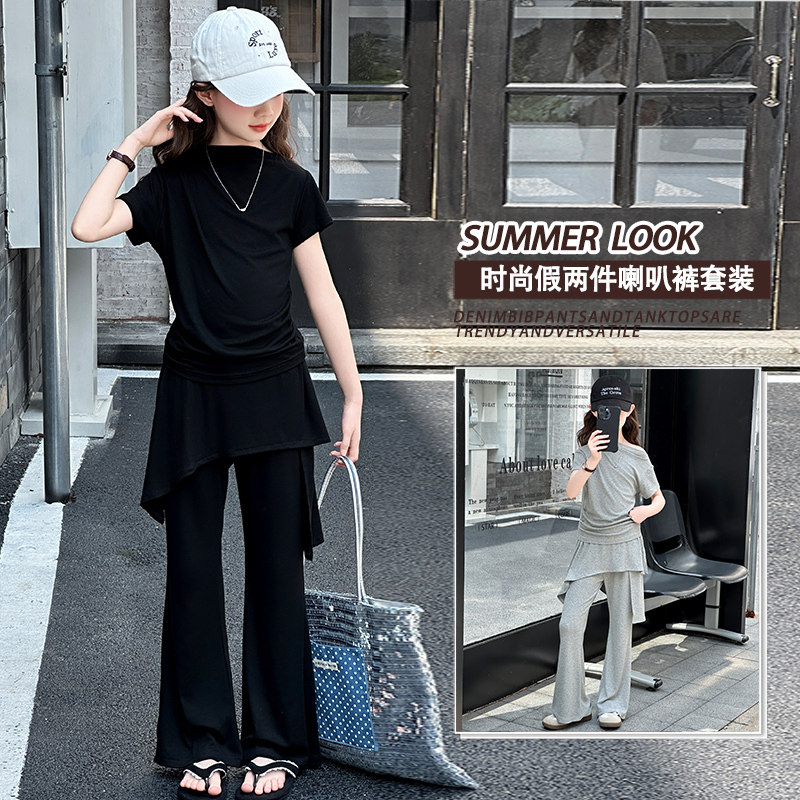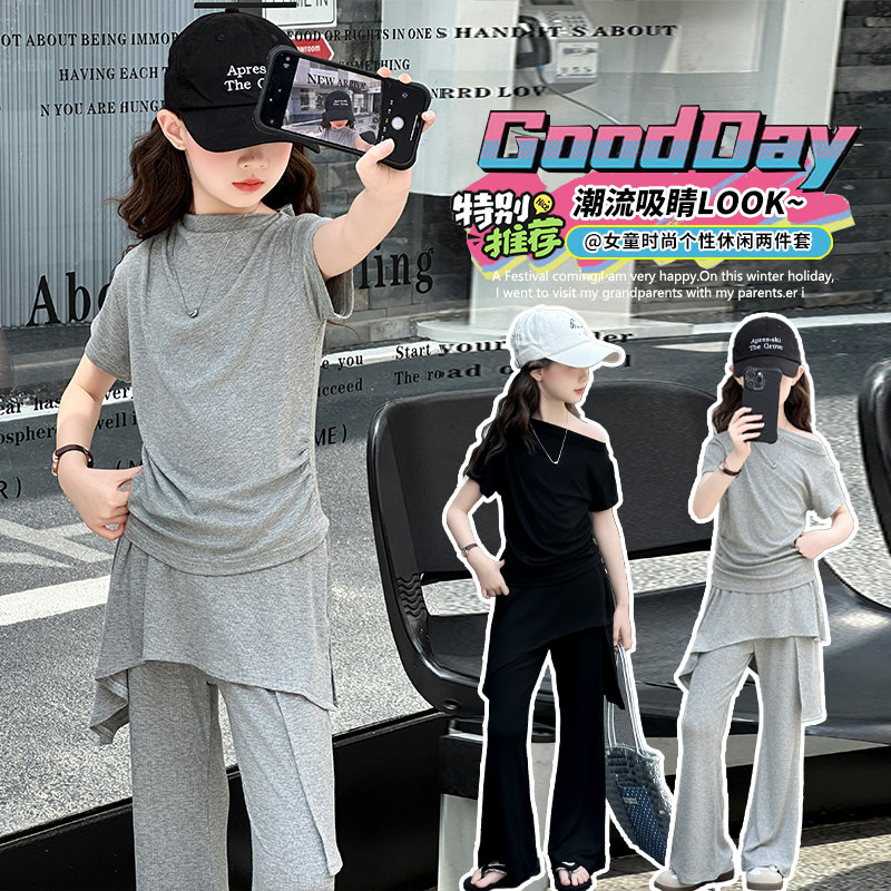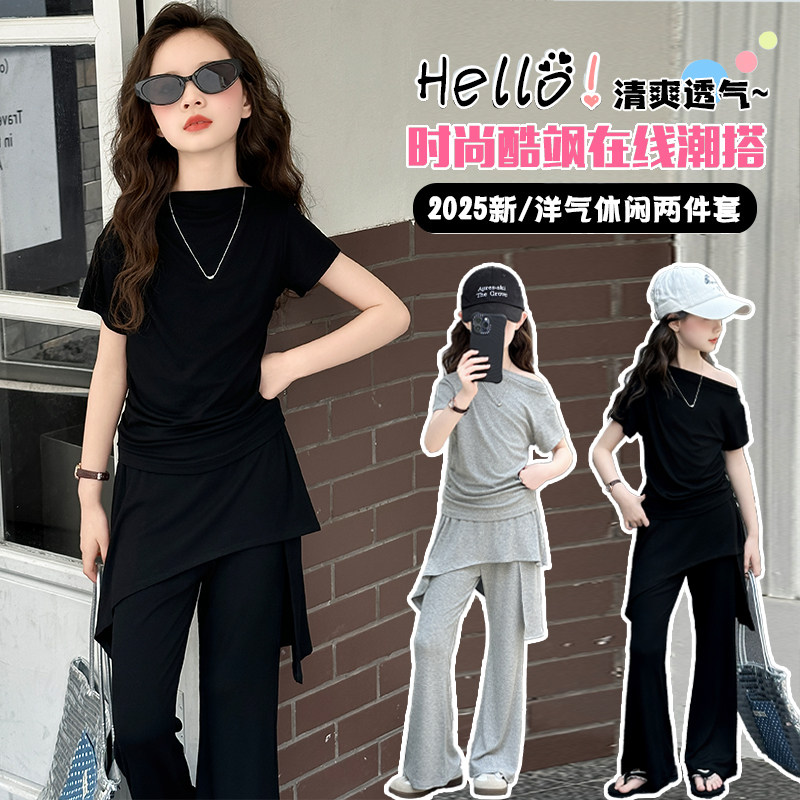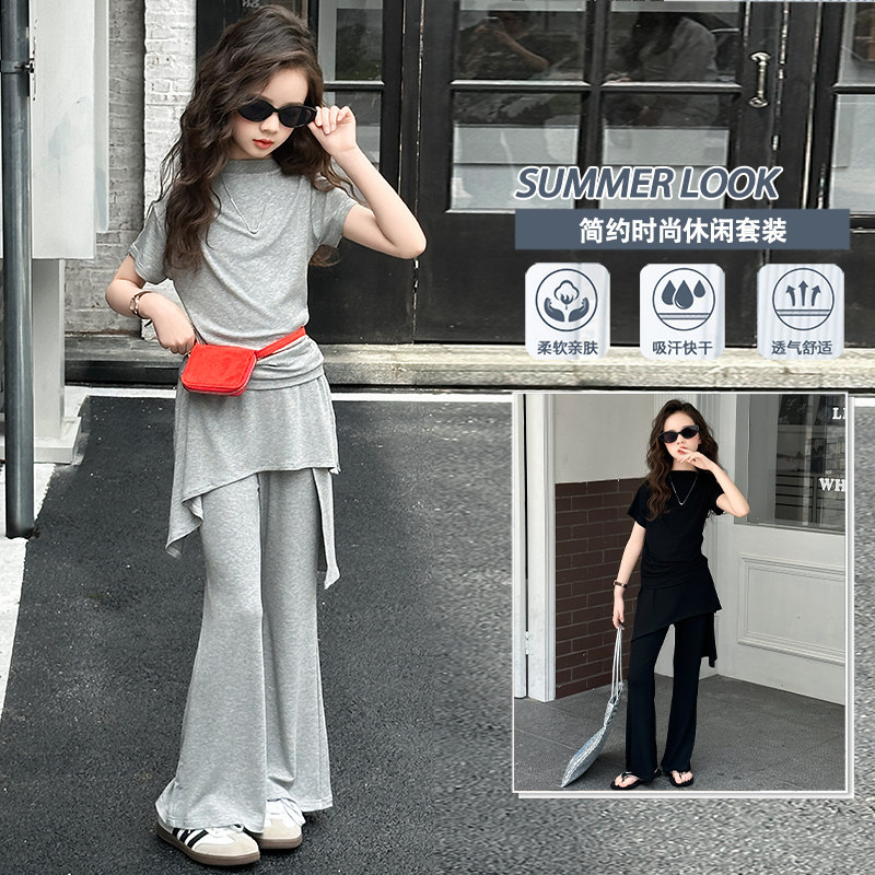 女童运动套装夏季韩版女孩不规则长裤两件套中大童休闲裤童装衣服