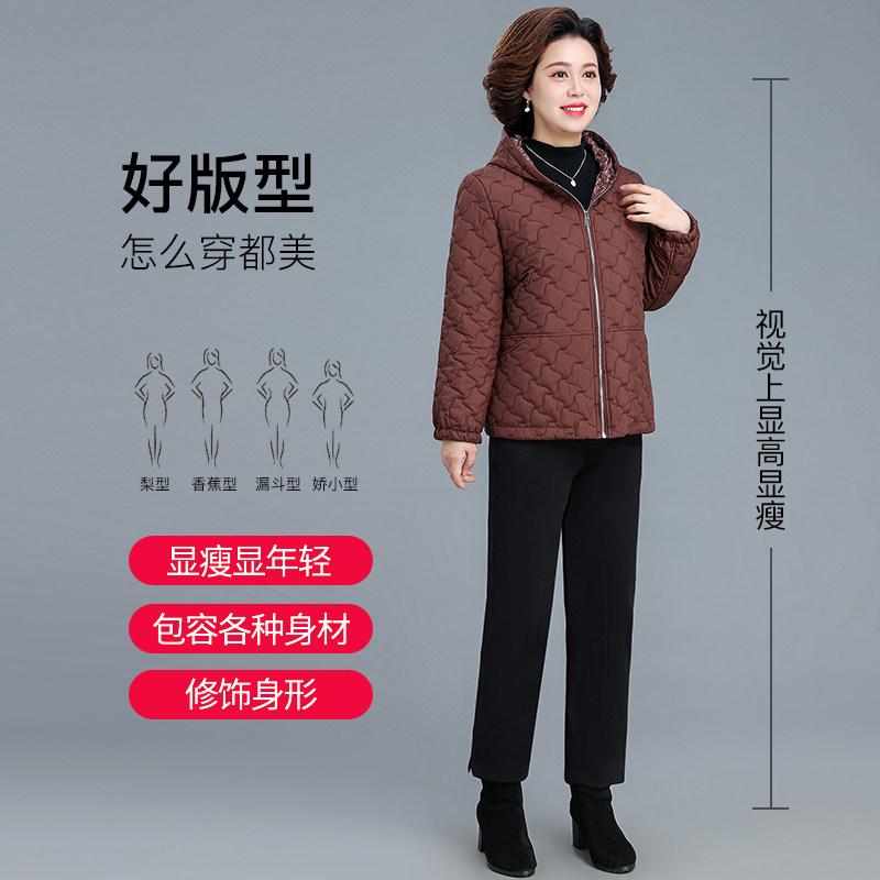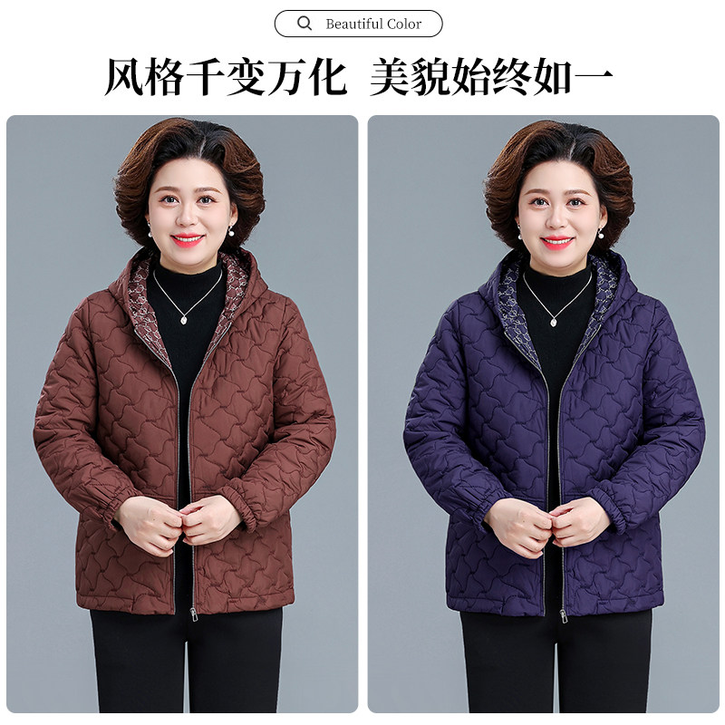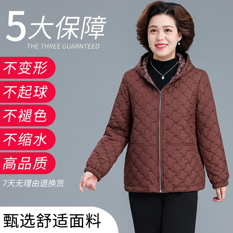 中年妈妈秋冬装羽绒棉服大码夹棉轻薄棉袄中老年人女款冬棉衣外套