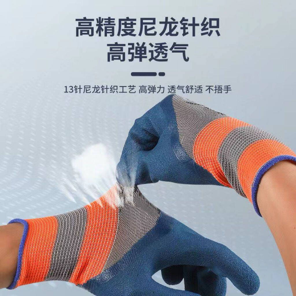 手套工作劳保耐磨防滑加厚劳动乳胶橡胶劳工防护干活工地浸胶防水
