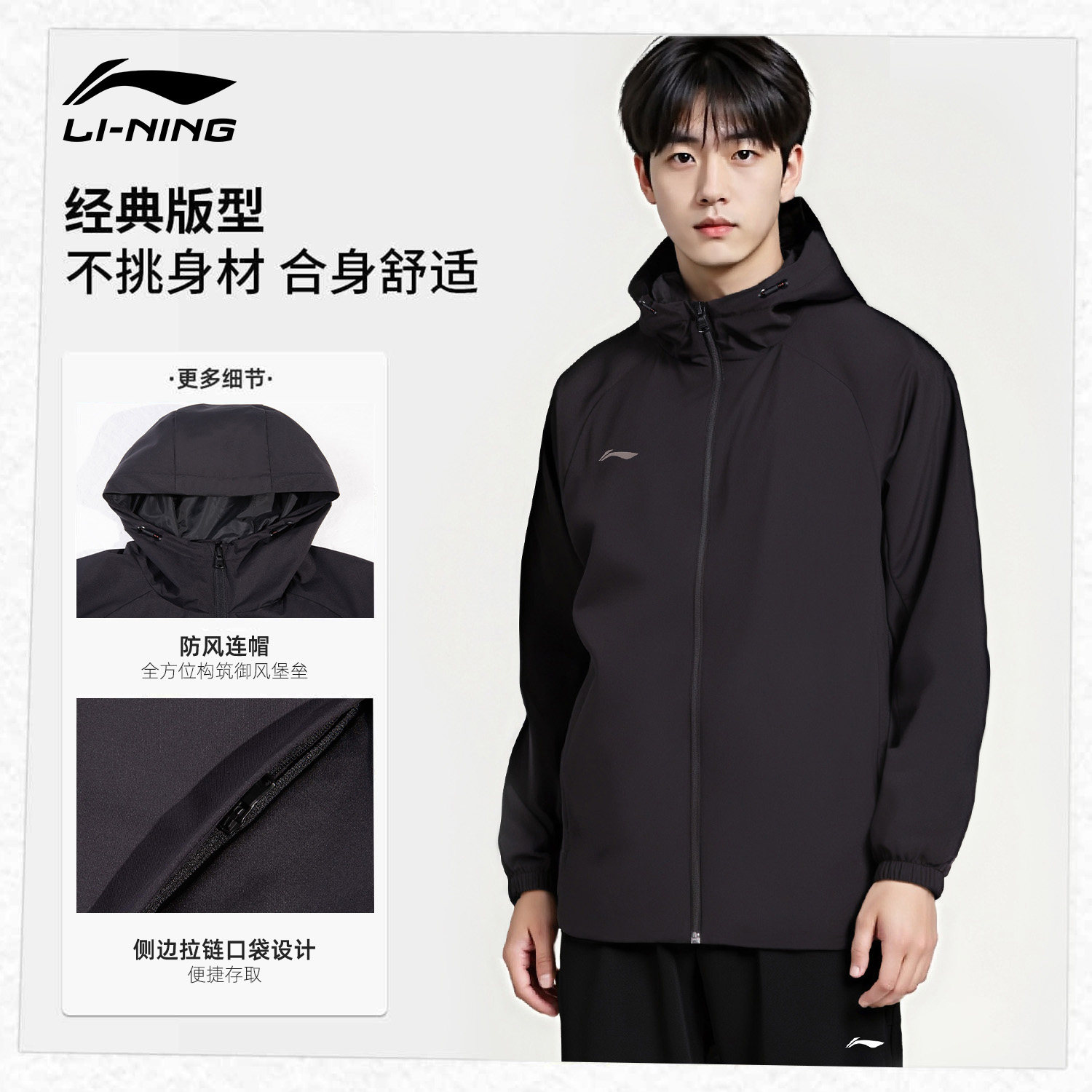 李宁运动风衣男款连帽防风2026秋冬新款舒适面料轻薄亲肤保暖外套
