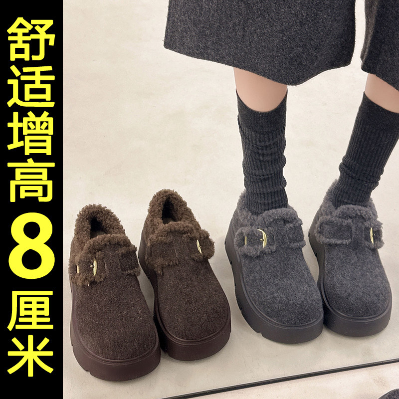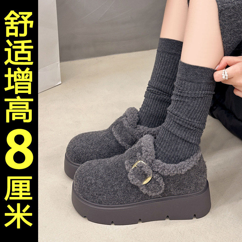 灰色厚底雪地靴女2026新款冬季加绒加厚保暖内增高勃肯鞋乐福棉鞋