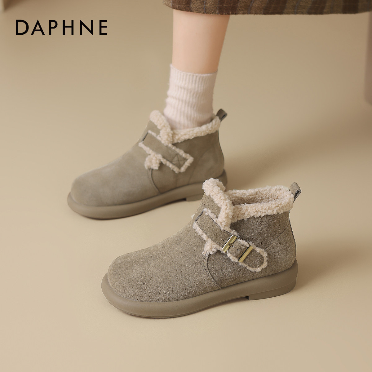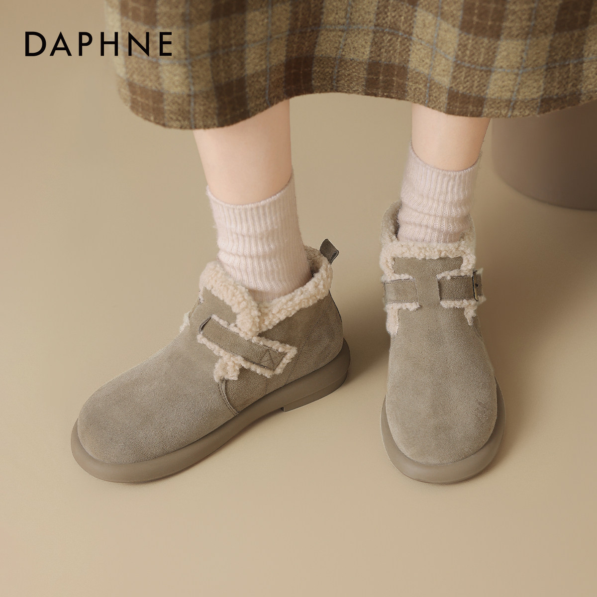 达芙妮灰色雪地靴女冬季2026新款女鞋厚底勃肯鞋加绒秋冬棉鞋短靴