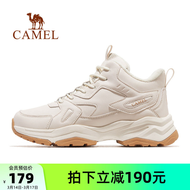 骆驼女鞋秋冬新款运动鞋女款户外加绒保暖棉鞋东北雪地短靴子