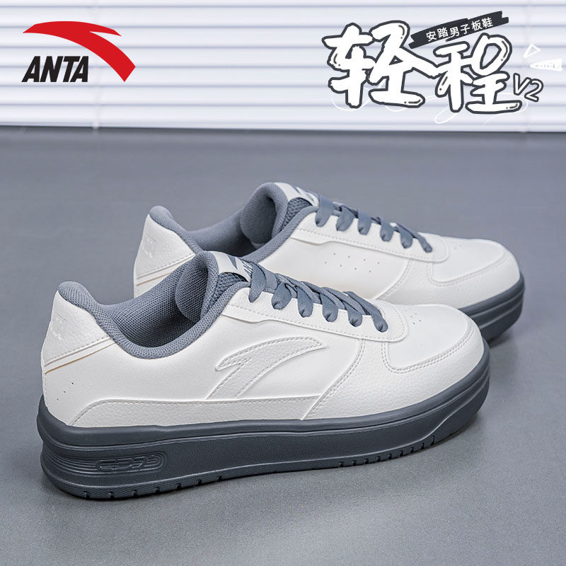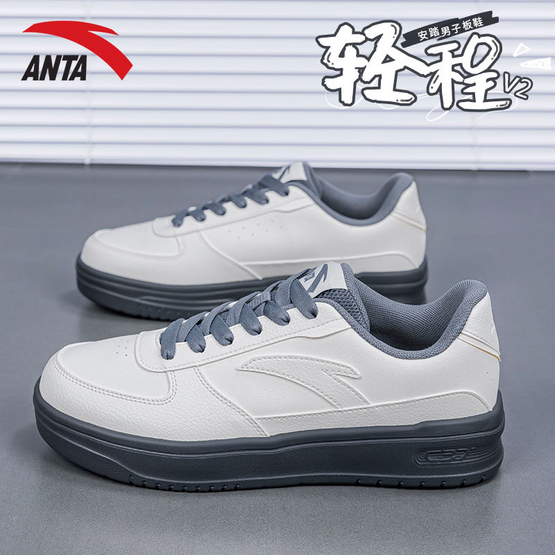 安踏轻程V2经典皮面板鞋男鞋2026春夏新款软底舒适小白鞋运动鞋