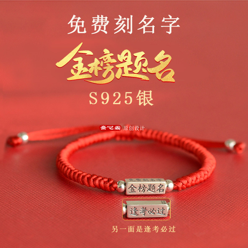 免费刻名字s925纯银逢考必过金榜题名红绳手链高考中考礼物送学生