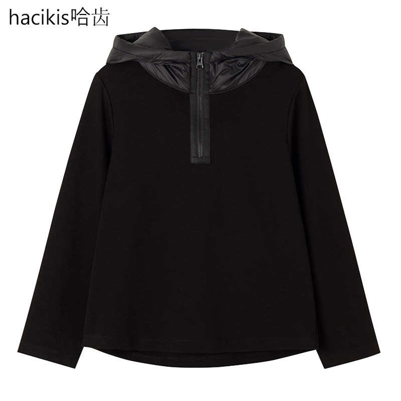 哈齿童装儿童黑色外套简约宽松百搭上衣男童女童连帽卫衣春秋新款