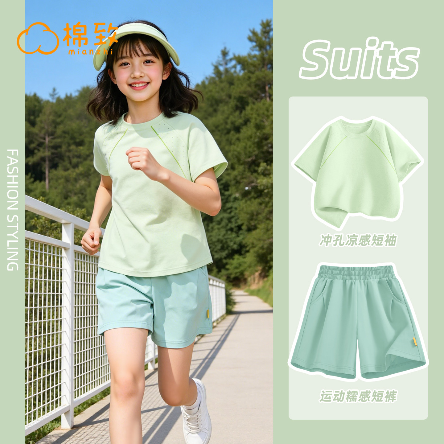 棉致女童夏套装2026新款夏季凉感速干短袖女孩夏装衣服儿童运动服