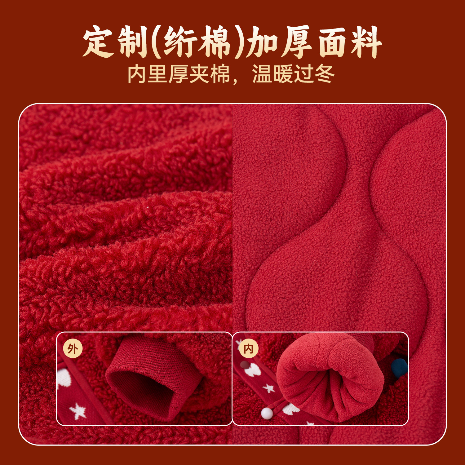 嘟嘟家男童拜年服儿童冬季外套红色女童过年上衣宝宝新中式衣服