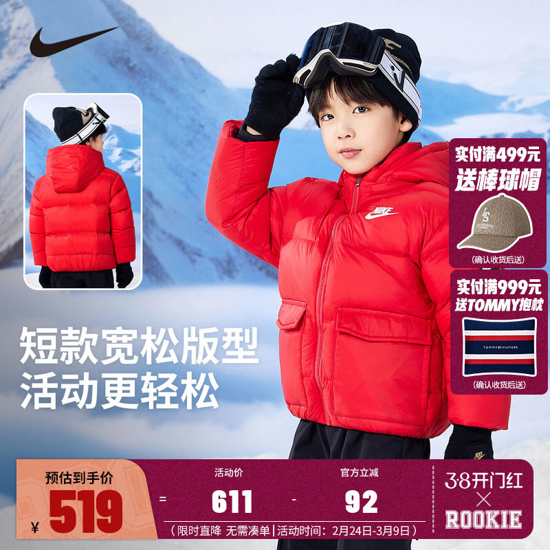 NIKE儿童装2025冬季新品男女童羽绒服中童大童加厚外套NY2342005