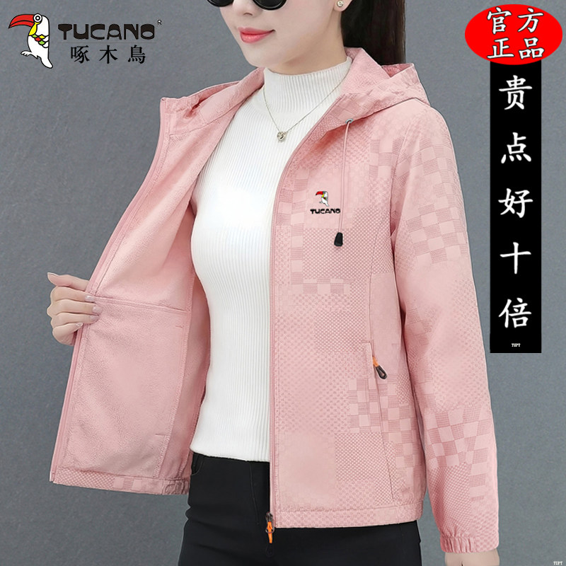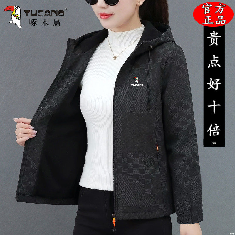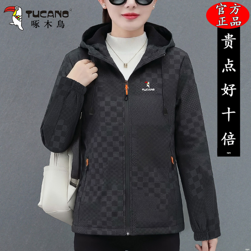 啄木鸟夹克外套女款2026新款春秋洋气妈妈连帽短款冲锋衣宽松上衣