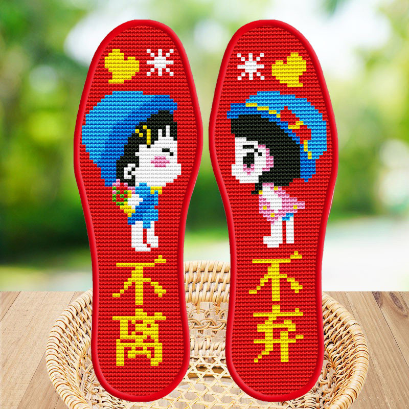 新款男女十字绣鞋垫绣花刺绣手工半成品2026年加厚自己绣结婚卡通